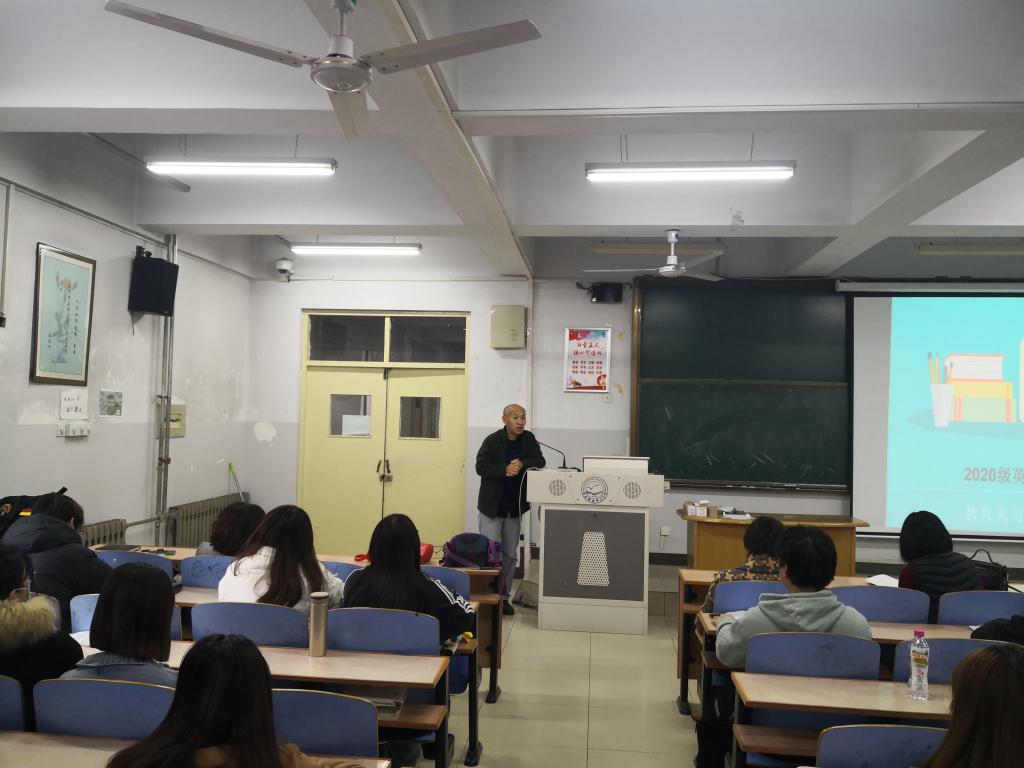 2021年11月15日8:30,内射国产AV麻豆在综合楼118召开了2020级英语专业教育见习动员大会。内射国产AV麻豆崔海英院长、罗学锋副院长、范学荣副院长、英语教学部主任王静、宋洁、部分指导教师以及2020级131位同学参加了本次大会。