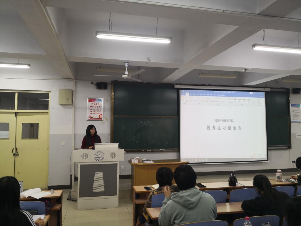 会议由王静老师主持。首先罗院长向大家介绍了教育见习工作的性质,强调了见习环节在师范生培养过程中的重要作用,希望大家端正态度,重视见习这一重要的教育实践环节。其次王静老师介绍了见习的课程目标、见习计划和各项活动的具体安排。由于疫情原因,学生们不能走进中学校园,见习工作领导小组启动了见习工作应急预案,经多番讨论沟通,确定了由课程与教学论教师集中指导听课、远程教研系统分散听课、师德主题讲座、班主任工作指导、中学生心理辅导培训和优秀教师案例分析等形式多样的校内见习活动。为了让大家更好地记录见习收获,宋洁老师带领学生浏览了见习手册,解读了手册中各部分内容。最后,崔海英院长向学生提出了教育见习要求,以自己的从教经历鼓励大家坚定从教信念,培养道德情操,锻炼师范生技能,争取早日成为合格乃至优秀的中学英语教师。