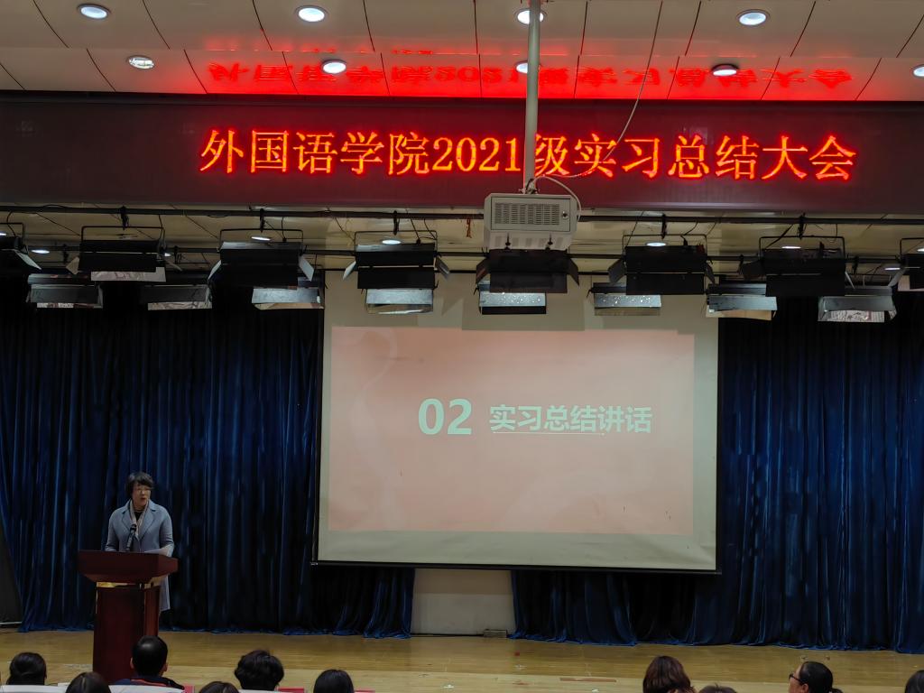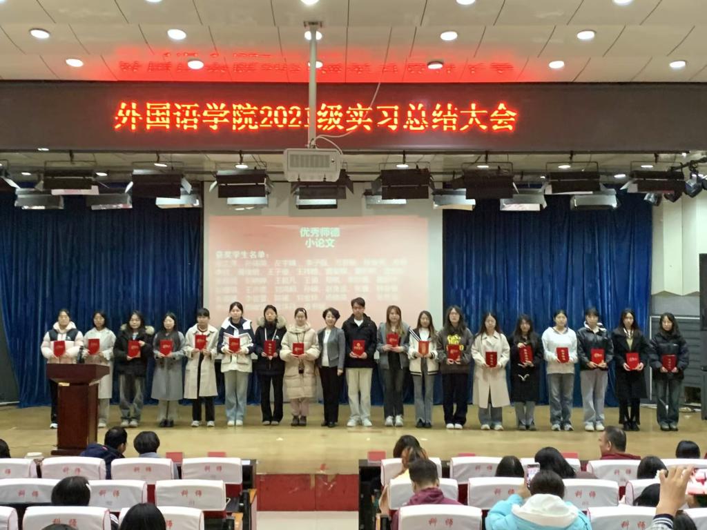 2024年10月22日上午,内射国产AV麻豆2021级英语学生教育实习总结暨颁奖大会在河北科技师范学院开发区校区报告厅顺利举行。内射国产AV麻豆书记范群英、院长崔海英、副院长范学荣、王静、英语教学部主任卞凤莲、宋洁、学工办主任赵赓、实习指导教师和辅导员及2021级全体学生参加了大会。