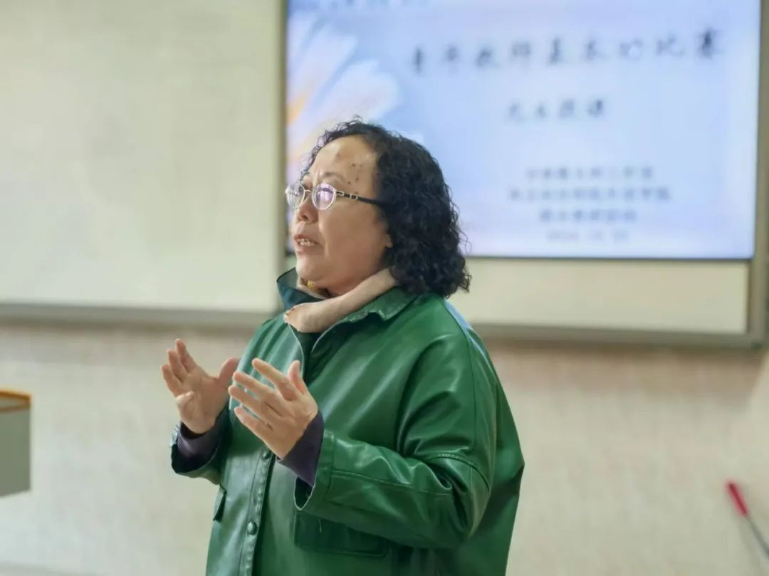 授课结束后,工作室主持人齐春霞老师详细地对五位青年教师的课程进行了点评与分析。她首先充分肯定了五位教师在授课中的精彩表现,并且指出她们不仅展示了自己的教学理念和独特的教学方法,还注重启发学生,逐步推进课程,这一点值得大家学习。
