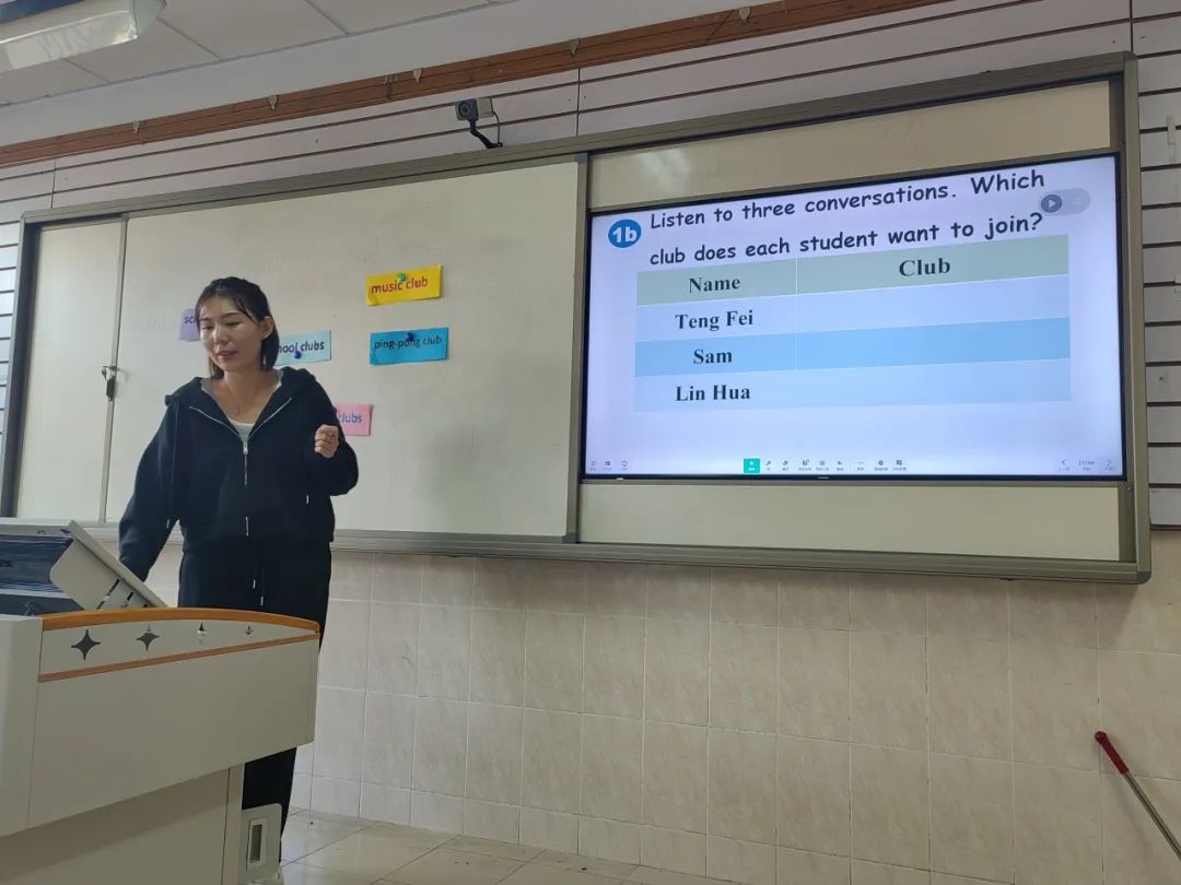张梅老师的授课内容是七年级上册Unit5 Section A How do you choose a school club?张老师的听说课以采访视频导入本课,结合本校社团活动实际,开启学生们的社团报名之旅。以兴趣为抓手,结合本课重点句型的听说活动进行梯度化训练,使学生们在情境环境中感知语言的运用。课后的总结活动,又进一步强化了本节课的学习重点,为学生们的后续学习奠定了基础。