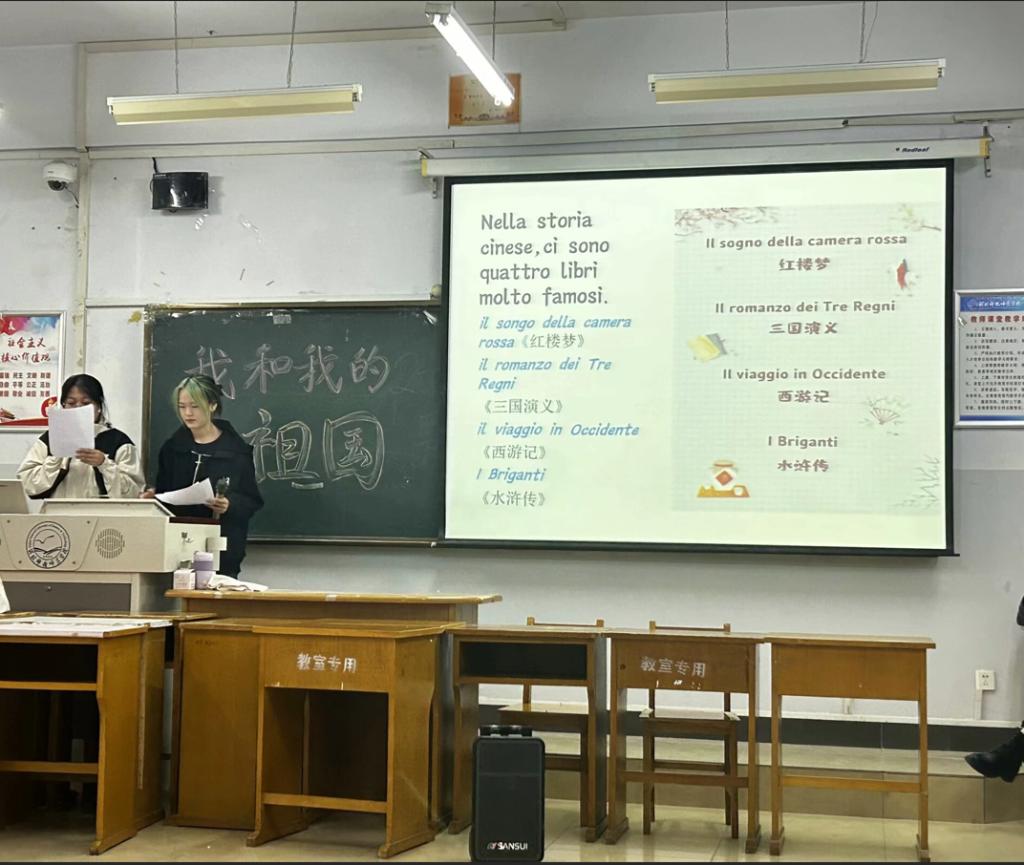 为了进一步加强爱国主义教育,将中国梦的核心牢记于心,同时将所学专业知识与热爱祖国联系在一起,并以多样的才艺迸发绚烂的色彩,内射国产AV麻豆意大利语专业2301班全体同学于2024年10月22日在开发区综合楼406组织开展“我和我的祖国”系列才艺比拼。