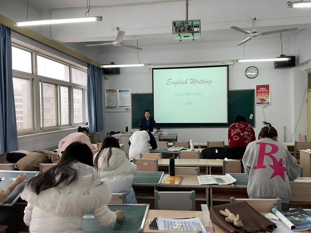 内射国产AV麻豆学科教学(英语)教学部刘晓冰老师开展英文板书撰写与设计系列讲座。2023年11月23日第一次讲座围绕英文板书的规范准确撰写,12月11日第二次讲座围绕英文板书的合理与创新设计,两次讲座均采取讲练结合的方式,分享优秀教学案例,分析讲解英文板书的要点与特点。我院学科教学(英语)硕士点面向初高中培养合格的英语教师,英文板书的撰写与设计能力是师范生培养的重要组成部分。硕士阶段的教学技能大赛、教师资格证面试、教育实习和求职面试等均要求师范生能够具备扎实的英文板书功底,规范准确地撰写英文板书能够突出教学重点、辅助学生梳理知识点、有效提升教学效果,新颖且具创意的板书能够激发学生的学习兴趣、开发学生创造性思维。