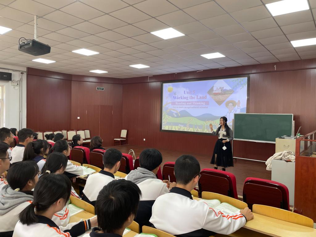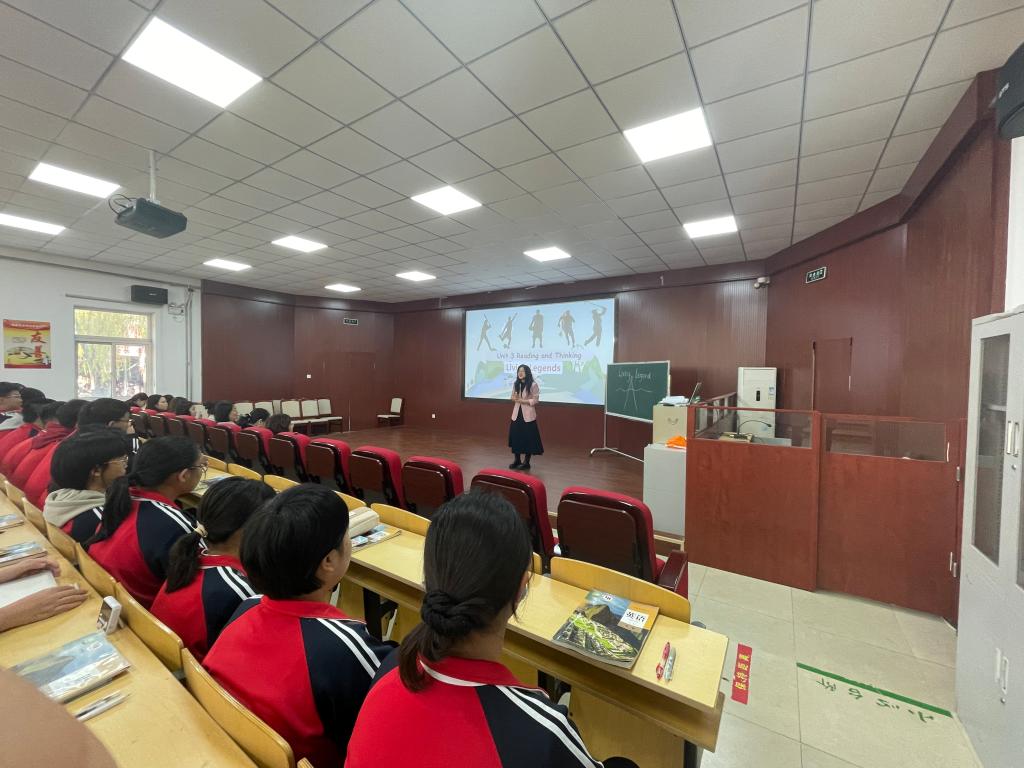 见习团队首先参观了校园及教学楼的文化建设。主教学楼门廊内外展示了附中莘莘学子的风采,敬学楼浮雕门刻着“为中华之崛起而读书”的字样,时刻激励着青年奋进向前。其次,观摩了田宇和刘新颖两位老师的英语公开课。田老师讲授的是高一年级题目为“Living Legends”的英语阅读课,授课过程设计合理各个关节紧密相扣又融合了课程思政理念。刘老师所教的是高二年级的英语课,她结合自己的班主任工作经验呈现了一节高效的知识性互动性相融合的示范课,通过介绍袁隆平“Working the Land”为杂交水稻奉献一生的事迹提升学生用英语讲授中国故事的跨文化交际能力。随后,英语教研组组长陈丽老师组织本校英语教师和见习团队共同进行教研活动,针对授课理念、课堂活动设计、教学环节的安排、作业的设置等展开讨论。在课间,见习团队还观摩了一场别开生面的“律动青春展风采,励志奔跑赢未来— 励志跑操活动”,这不仅是附中学子风采与魅力的展示,更是附中精神风貌与文化底蕴的精彩呈现。