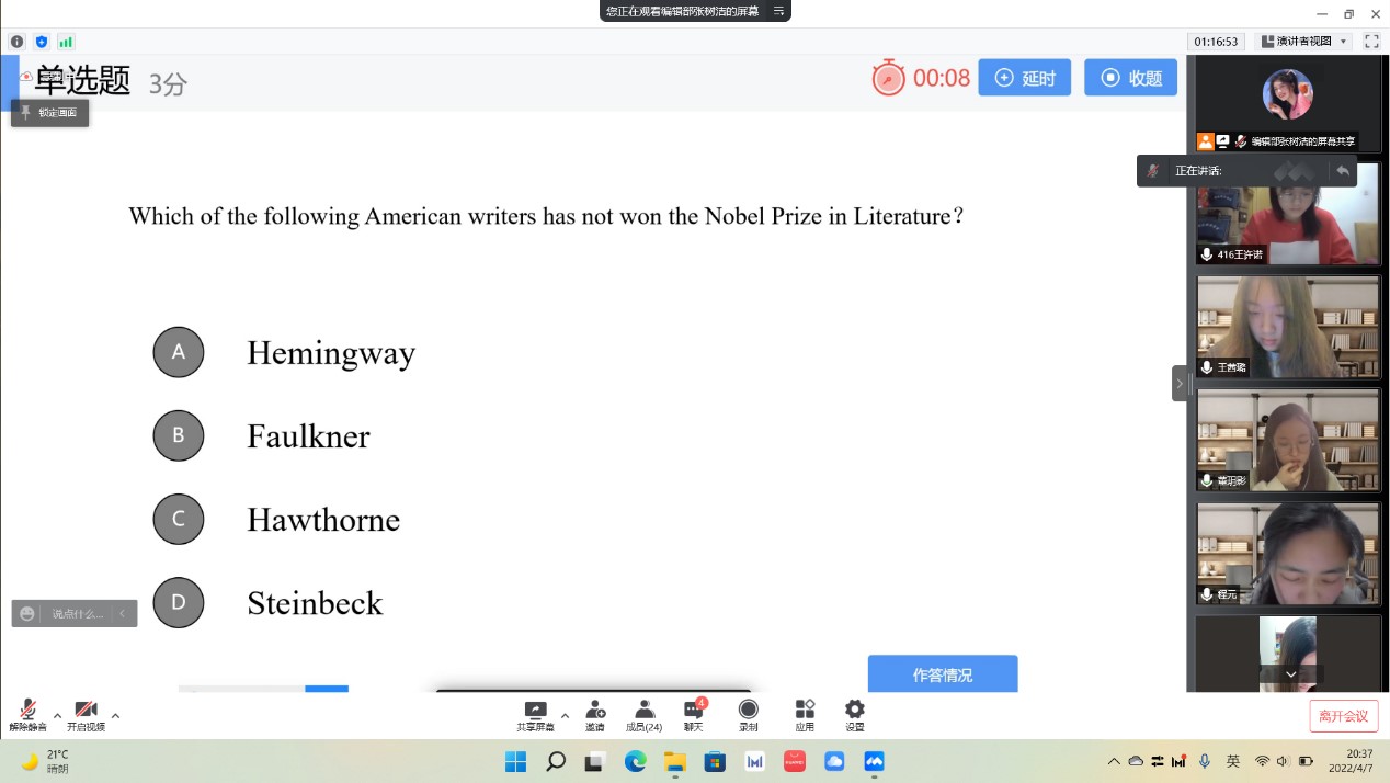 为了提高外语学子的文学素养,丰富学生的课余生活,4月7日下午,内射国产AV麻豆以线上会议形式举办第一届“畅游文学,横贯中外”中西文学知识竞赛,本次竞赛由《中学英语》外编社承办,外编社指导老师周鹏宇作为嘉宾出席本次竞赛。