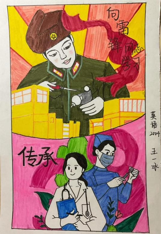 本次线上活动面向全院各班级和学生组织开展,共征集36份绘画作品。在本次活动中,同学们将自己对雷锋叔叔的赞扬,对妇女的尊重,对老人的敬爱经过画笔的渲染,落在纸张上,用自己的心血滋润每一个作品,也让更多的人了解许多未曾见闻的故事。经过评委讨论筛选,比赛评出一等奖1名,二等奖2名,三等奖3名。同时,此次活动的获奖作品于走廊处展览,供同学和老师们欣赏。