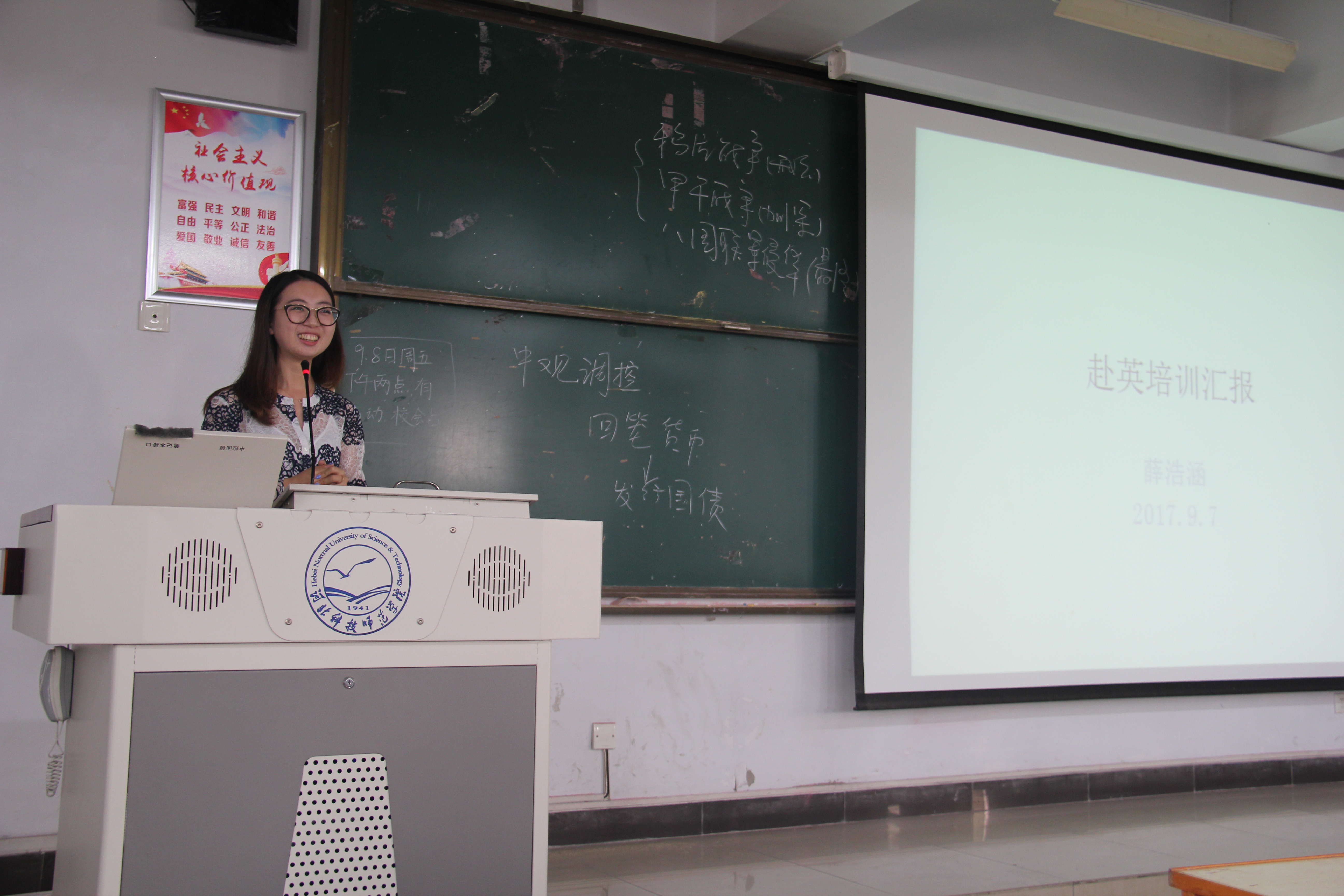 9月7日下午,内射国产AV麻豆在开发区校区312室举行归国教师报告会。国际合作与交流处处长东方阳、副处长孙学文以及内射国产AV麻豆全体教职工参加了报告会。