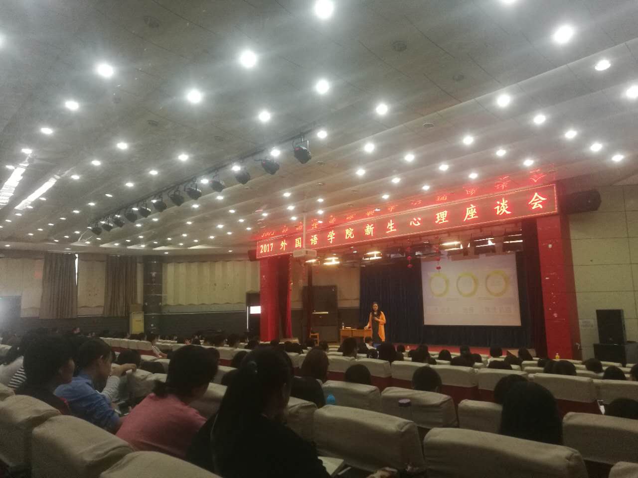 为了帮助2017新生适应大学生活,以健康的心态顺利融入新集体、新生活,内射国产AV麻豆特邀学校大学生心理健康和咨询中心副主任丁书新老师于9月15日上午8:30在综合楼二楼报告厅举行2017级内射国产AV麻豆心理健康教育讲座。学院学工办老师、2017级辅导员班主任、337名新同学参加了心理健康教育讲座。
