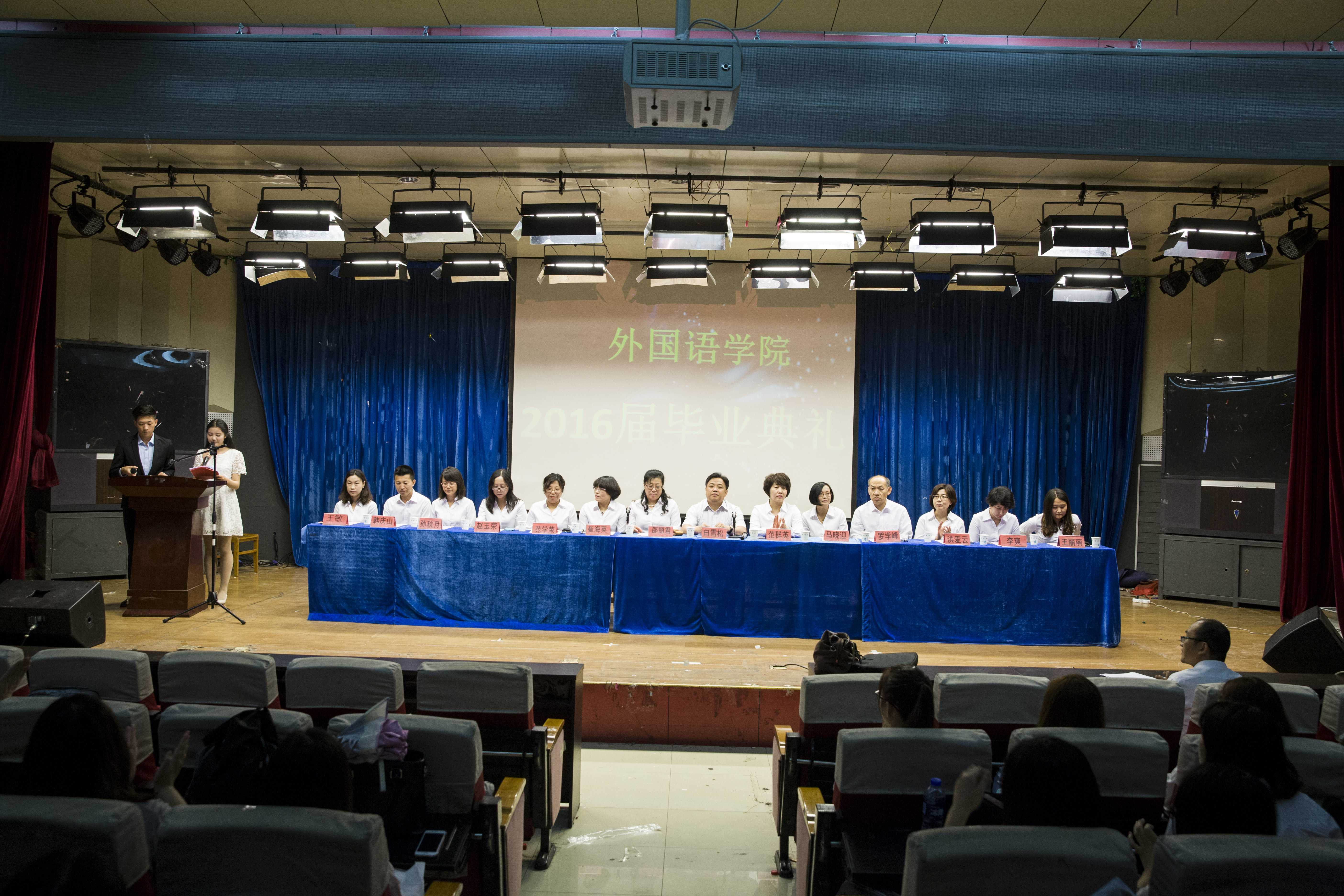 首先,一段温馨的VCR带着同学们的毕业情怀和领导老师的嘱托拉开了典礼的帷幕。之后,邵丽君院长介绍了2016届毕业生的基本情况,对本届毕业生的基本情况做了简单介绍,并对大家顺利毕业表示了衷心的祝贺。范群英副书记副院长和范学荣副院长分别宣读获得2016届省级和校级优秀毕业生名单,崔海英副院长宣读了2016届考取研究生名单,并对省级优秀毕业生和考取研究生同学进行了隆重而热烈的表彰。之后,英语教学部刘丽敏老师代表全院教师发言,回顾美好的大学时光,鼓励大家终身学习,真情道出内射国产AV麻豆永远是温馨家。2013级旅游英语边中奇同学和学生会主席刘晓玉同学分别代表全体毕业生和在校生发言;最后,白雪松书记在典礼上作了激情洋溢的讲话。他充分肯定了毕业生们为学院发展所作的成绩,对即将毕业的同学们提出了五点殷切的希望和衷心的祝福。毕业典礼之后,学院举行2016届本科毕业生学位授予仪式。首先崔海英教授宣读学位评定委员会主席的委托词,之后,内射国产AV麻豆院长邵丽君教授宣读授予学位的决议和名单,最后由各位导师为内射国产AV麻豆194名获得学士学位的毕业生颁发学位证书。