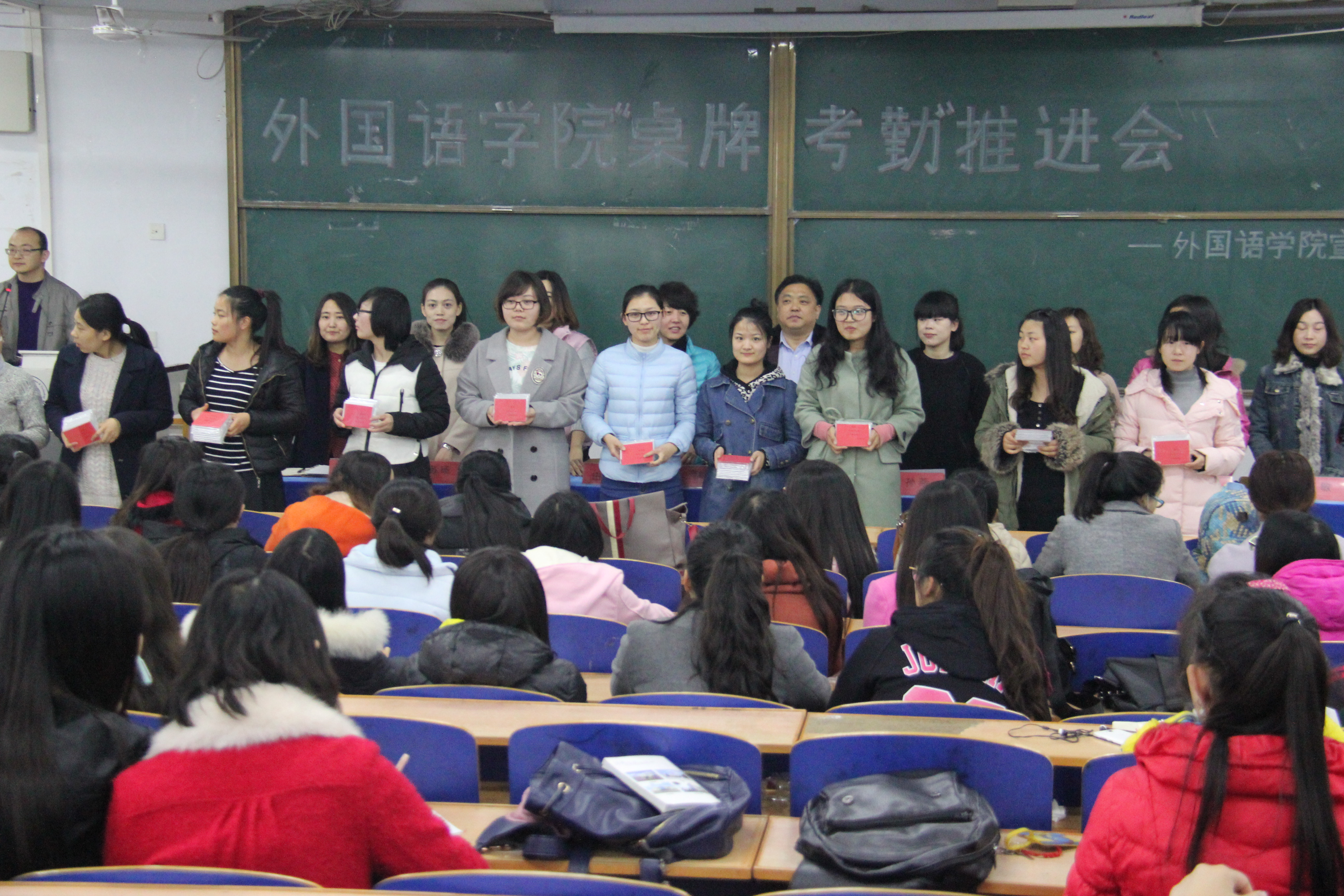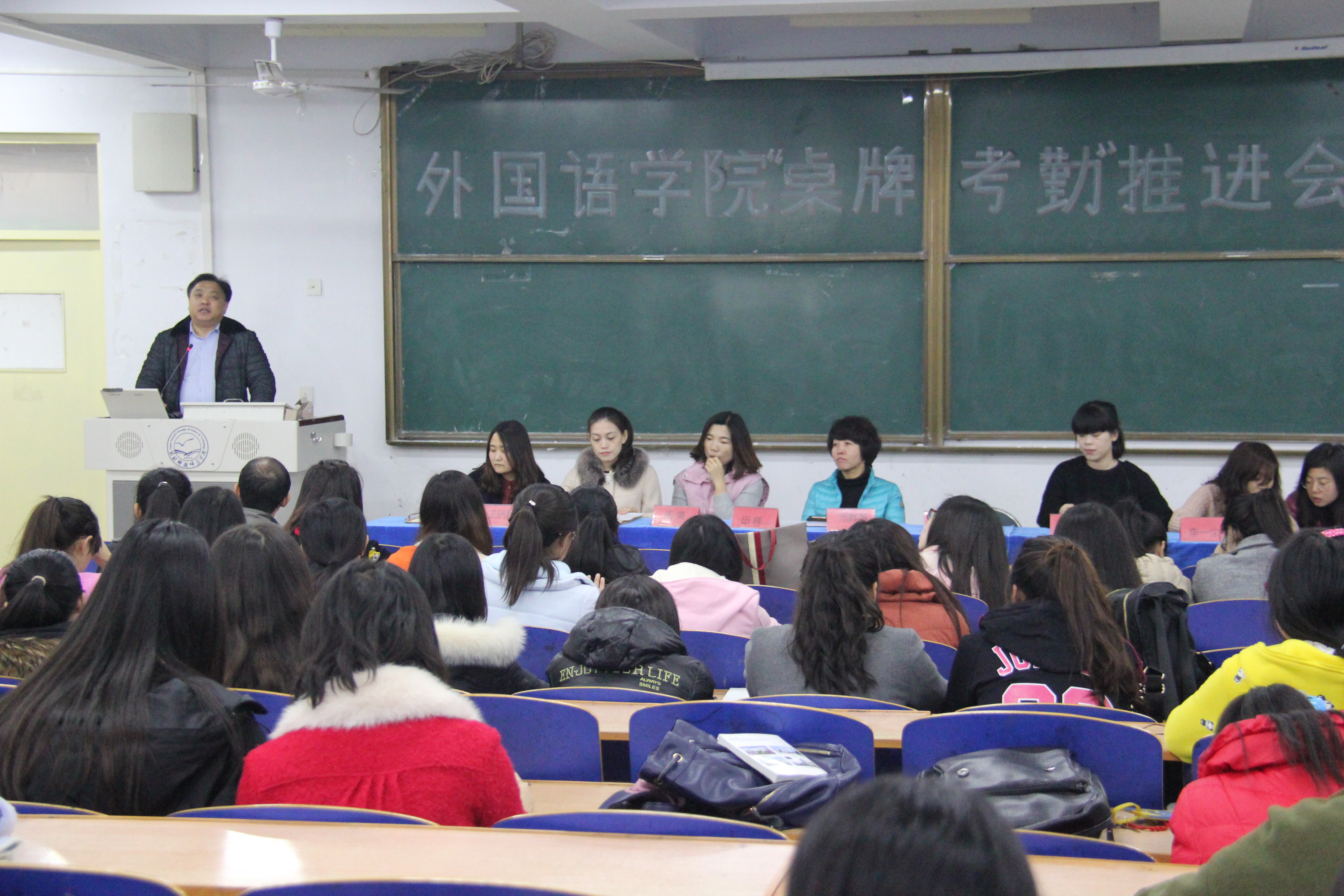 为响应学校“三风建设”要求,强化课堂考勤,优化课堂秩序,提升课堂教学效果,内射国产AV麻豆于2016年3月3日中午在教学楼212召开了推进课堂桌牌管理动员会。学院党委书记白雪松、副书记副院长范群英、全体辅导员及近160名学生干部和学生代表参加了会议。