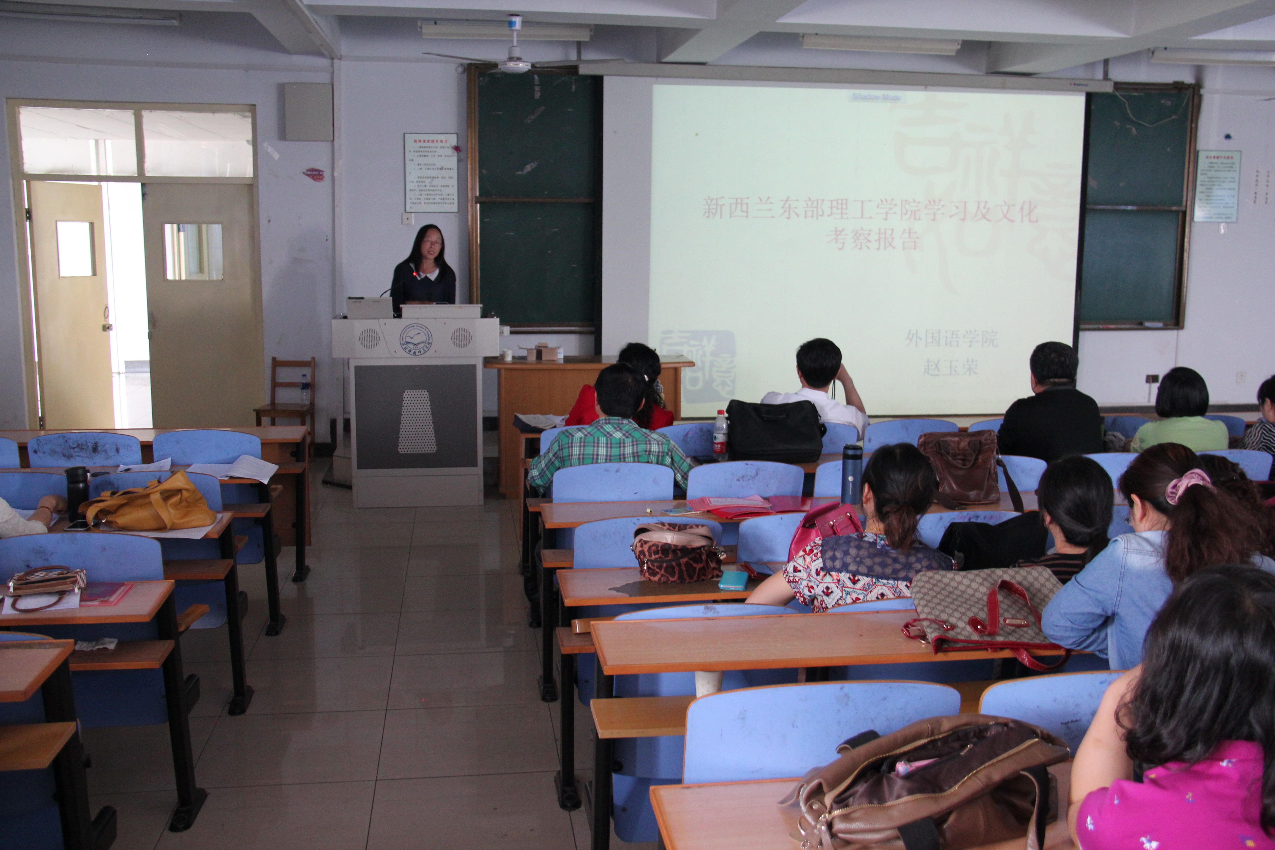 5月21日下午,内射国产AV麻豆在开发区校区综合楼312室召开新西兰归国教师汇报总结会,国际合作与交流处处长东方阳、内射国产AV麻豆院长邵丽君、副院长游建民及全体教职工参加了汇报总结会。