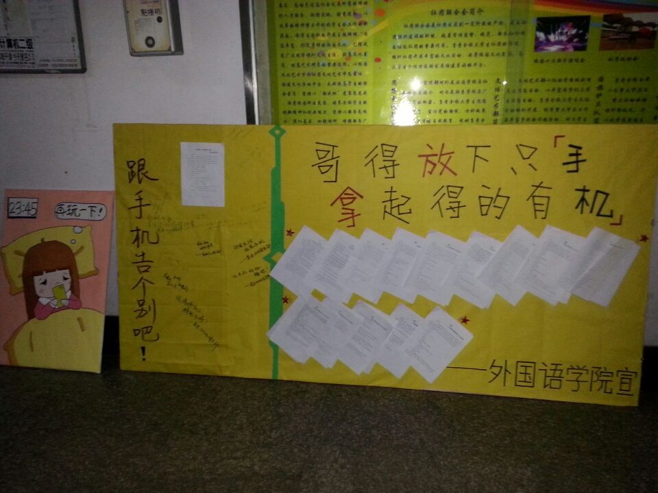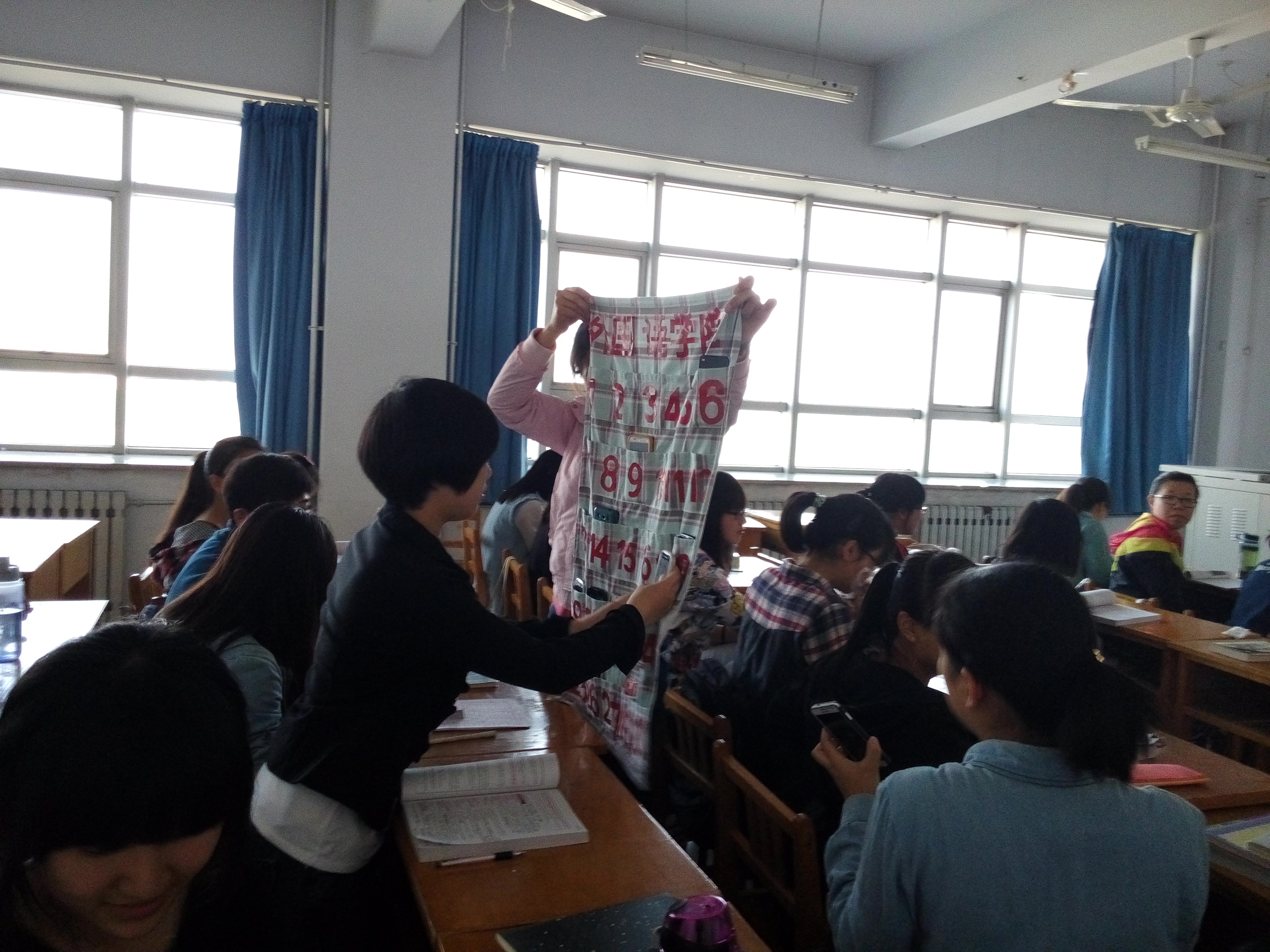 为提高学生上课的学习质量,减少手机上网对大学生学习、生活的负面影响,内射国产AV麻豆通过多种举措建设“无手机”课堂,创建优良学风。首先内射国产AV麻豆学生会发起“告别手机控,清风教室行”的倡议书和签名宣传,广泛动员,深入宣传,教育同学们文明上网,适度上网,杜绝课堂上网,增强学生自主、自律和自控意识。然后,学院召开“让手机睡觉,让青春酷跑”主题活动,为各班级统一制作手机收纳袋,提出学生课前统一关机上交手机的要求;严格纪律,各班级通过课堂上交手机情况作为考勤依据,杜绝上课“低头族”,营造内射国产AV麻豆锐意进取的优良学风。