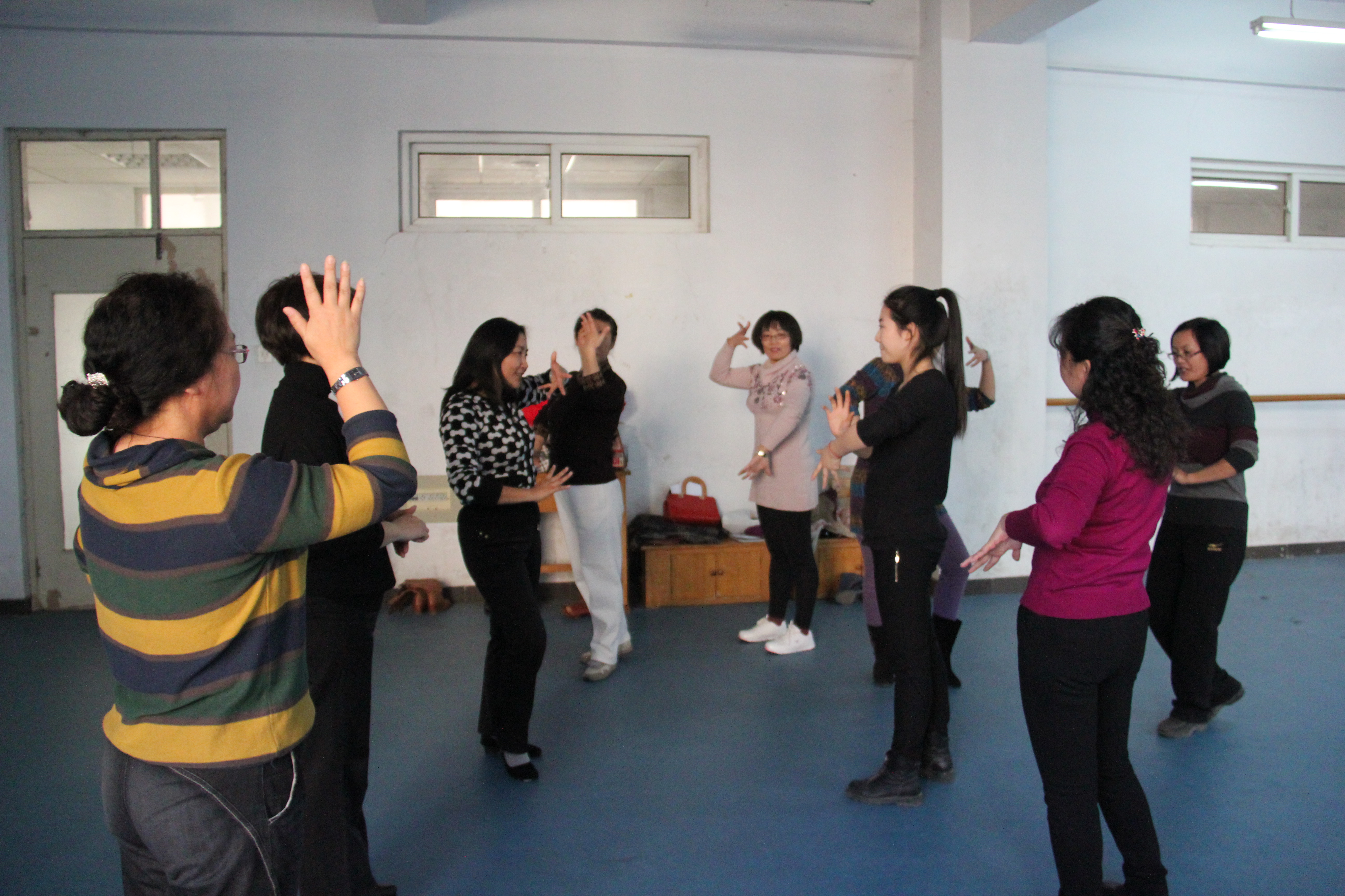 2013年11月26日下午,内射国产AV麻豆工会联合开发区校区教师舞蹈队在开发区校区舞蹈教室开展学舞蹈、跳舞蹈活动。内射国产AV麻豆工会会员、开发区校区部分舞蹈爱好者参加了此次活动。