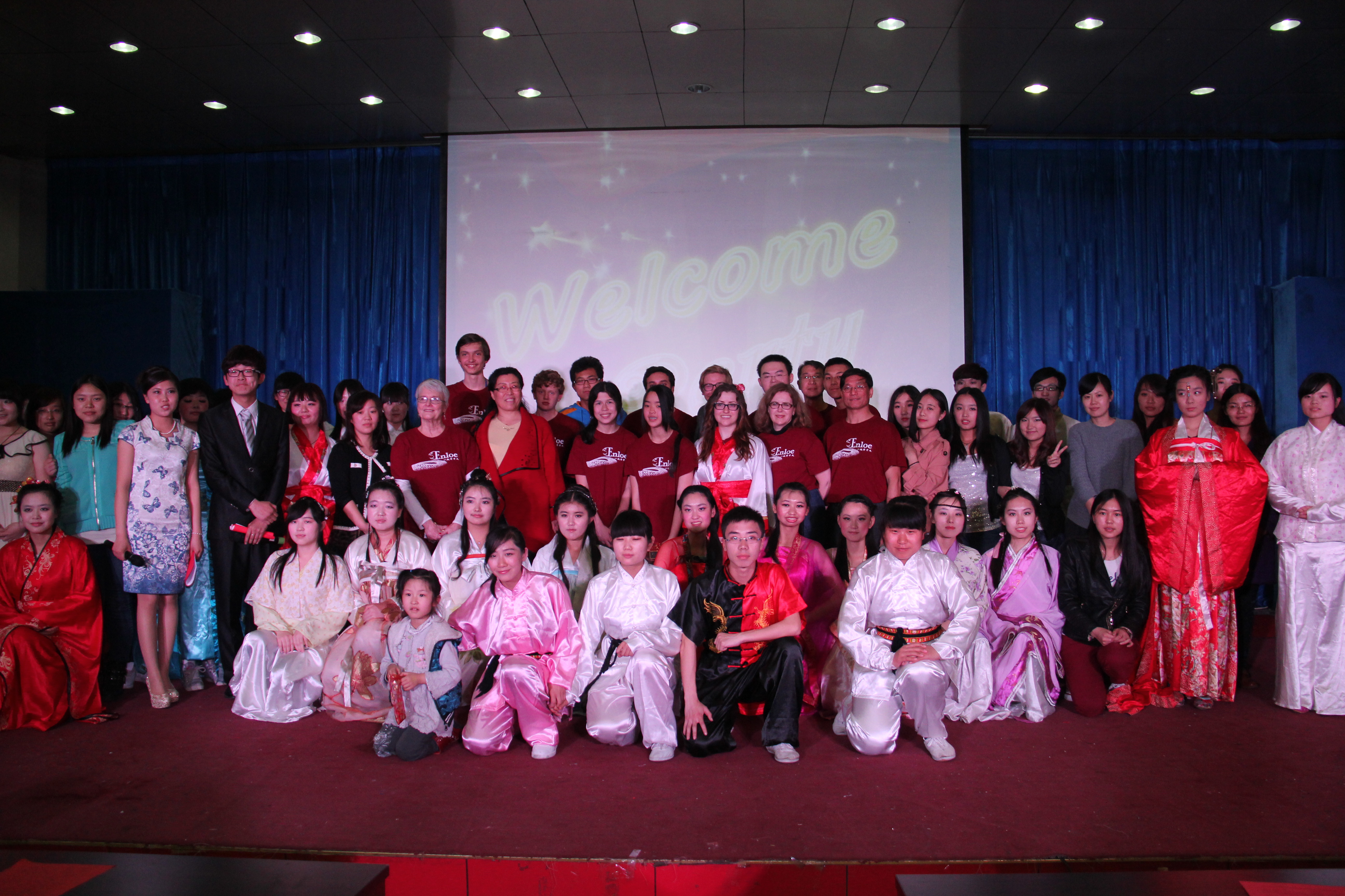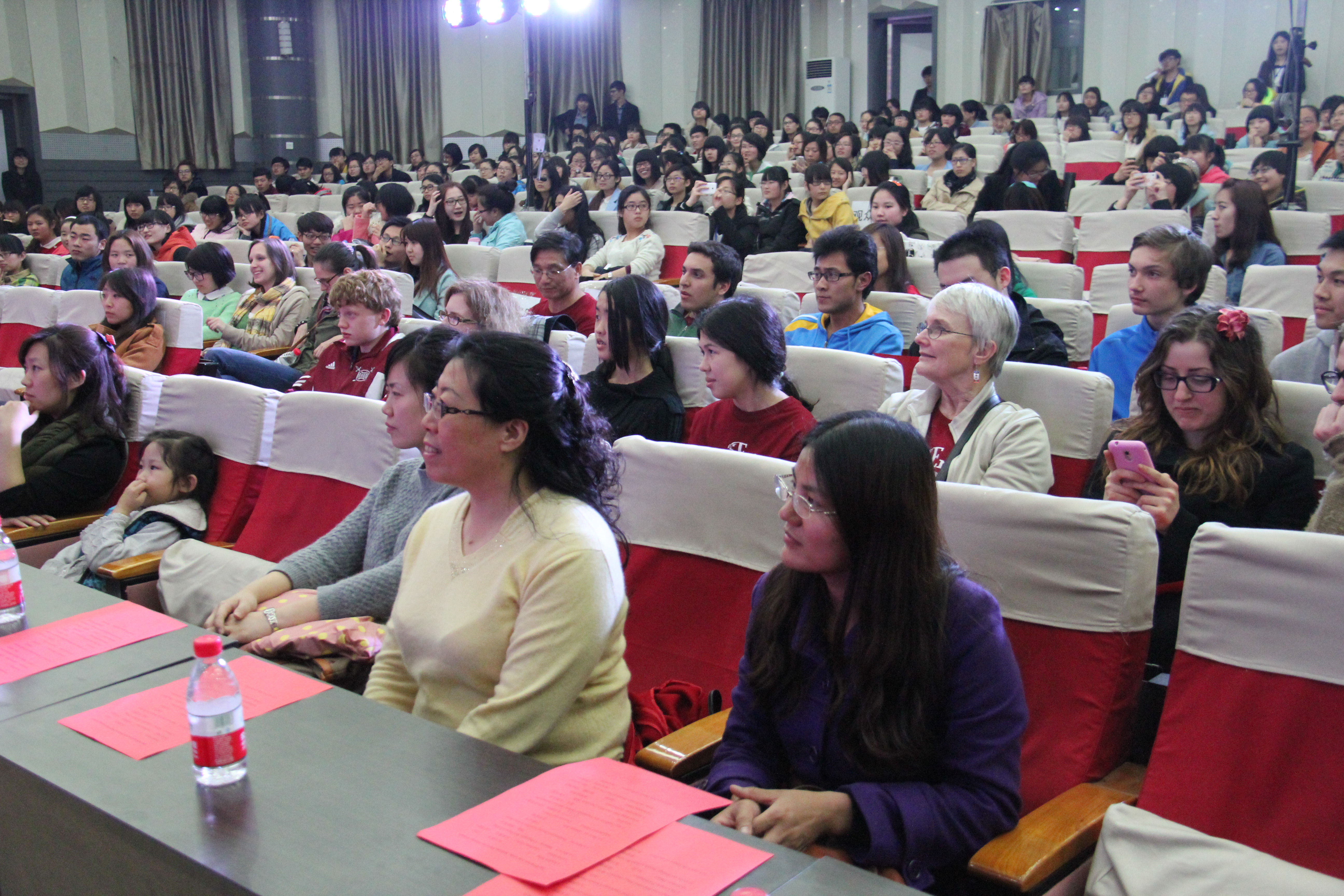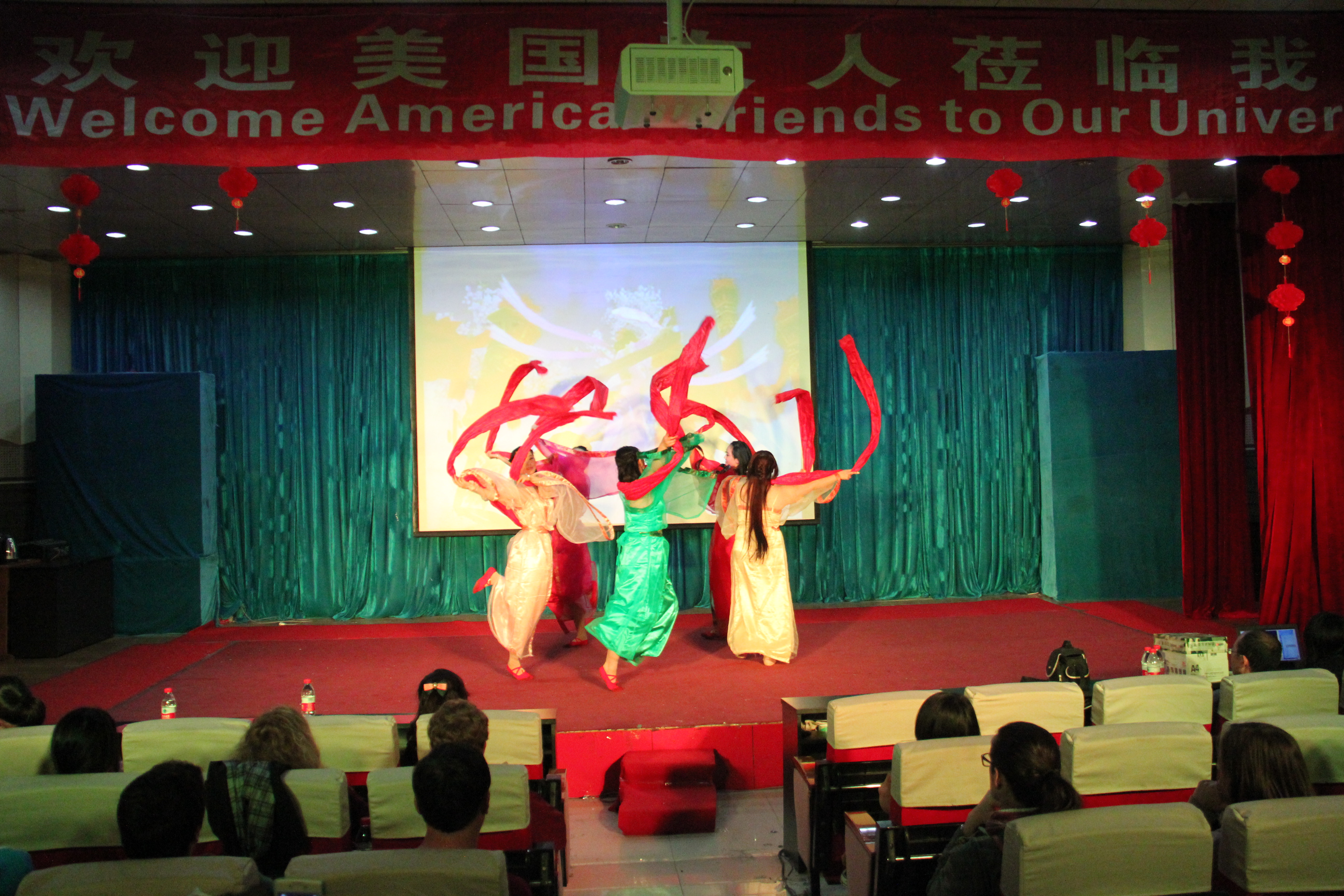 2014年3月28晚7点30分,河北科技师范学院内射国产AV麻豆在综合楼学术报告厅举办了主题为“欢迎美国友人”的晚会。来自美国Enloe高中的14名师生、内射国产AV麻豆院长邵丽君、国际交流处郁洋老师及内射国产AV麻豆的同学们一起观看了本次晚会。