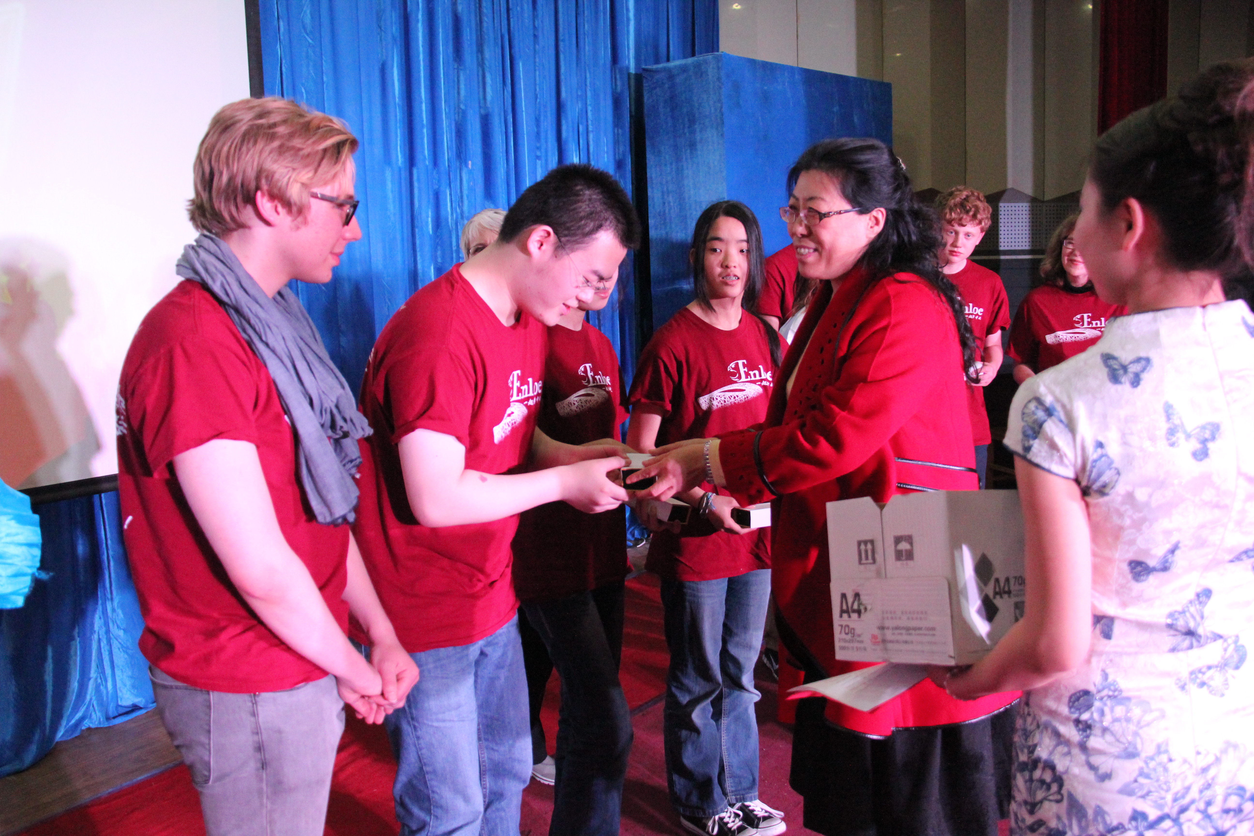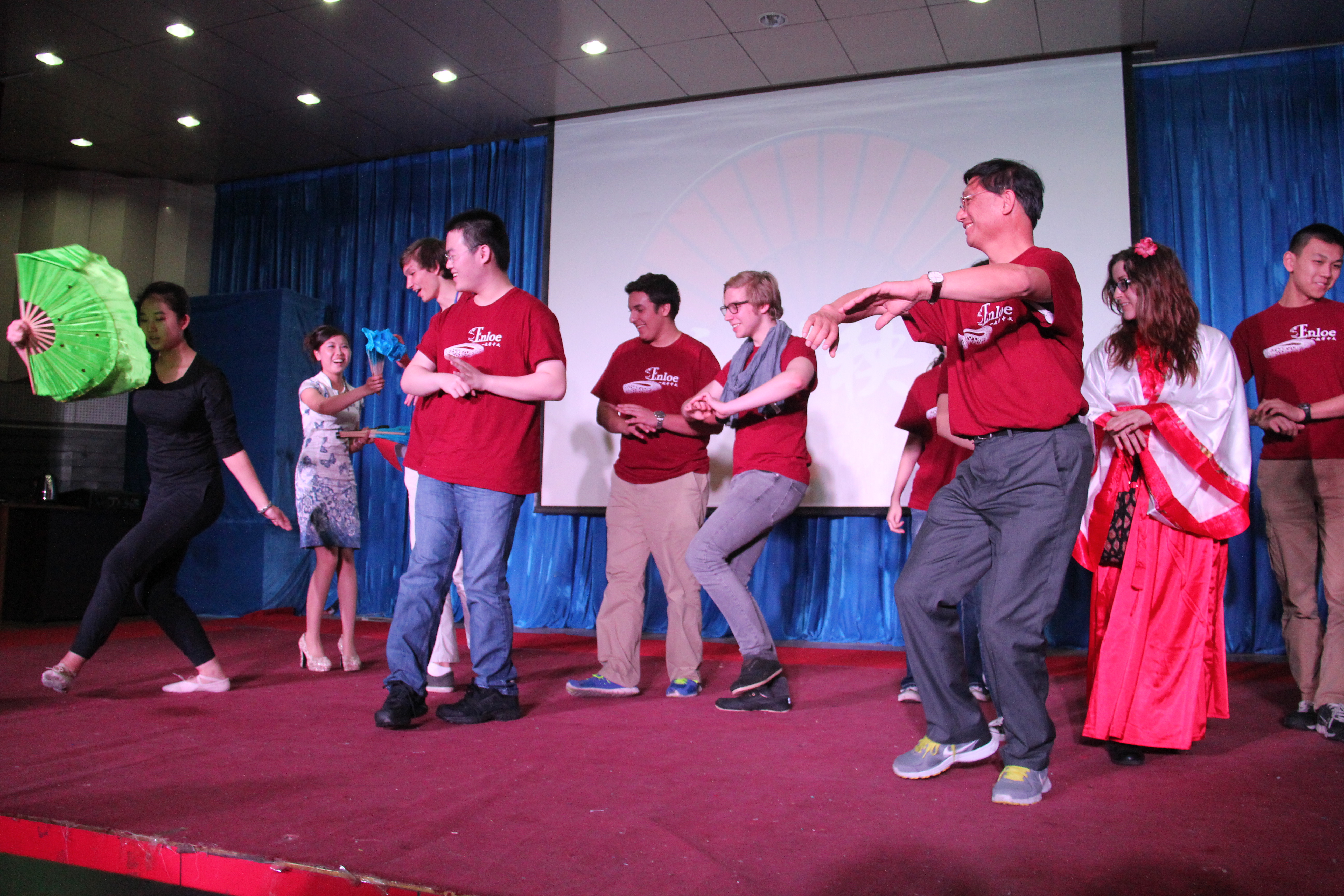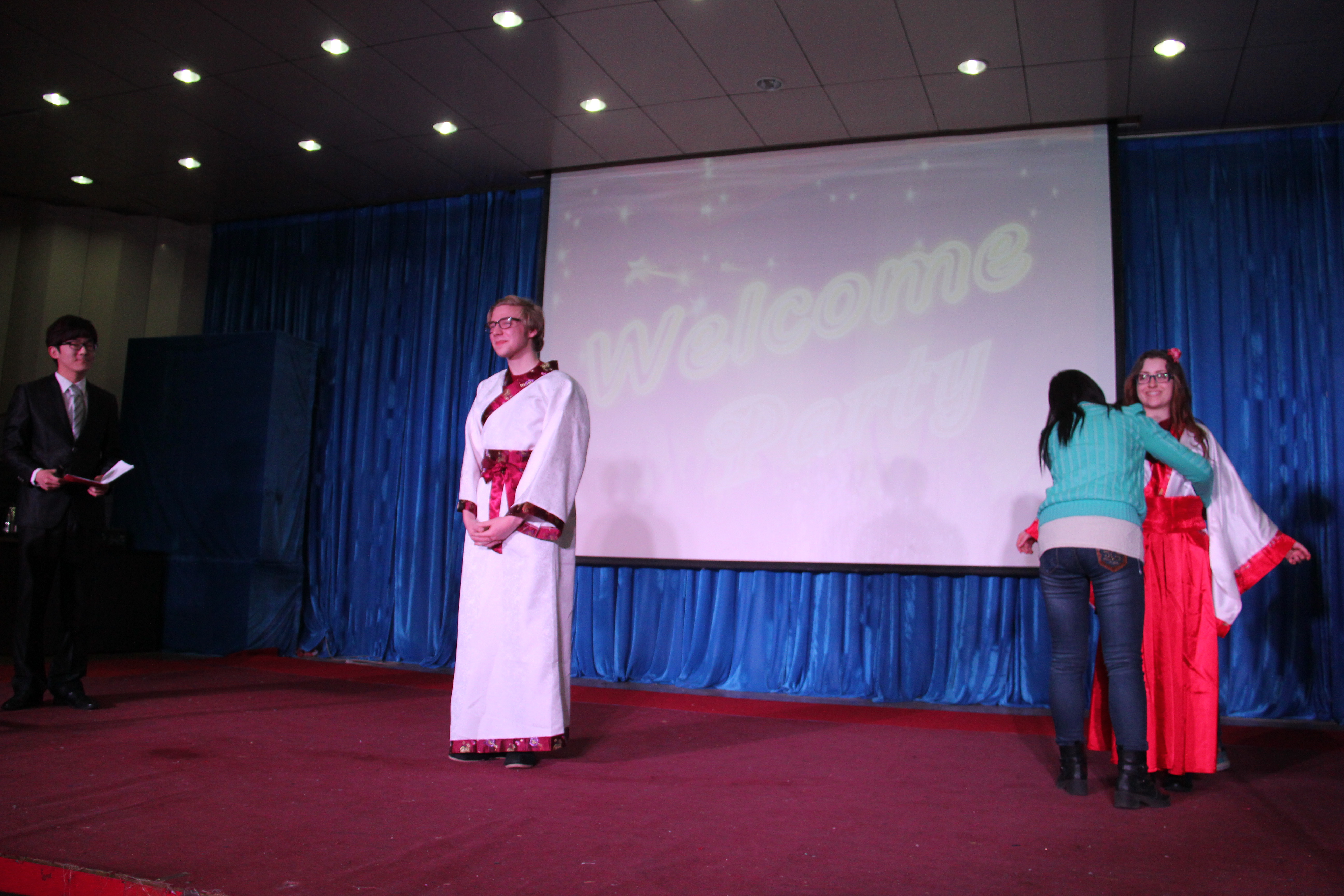 2014年3月28晚7点30分,河北科技师范学院内射国产AV麻豆在综合楼学术报告厅举办了主题为“欢迎美国友人”的晚会。来自美国Enloe高中的14名师生、内射国产AV麻豆院长邵丽君、国际交流处郁洋老师及内射国产AV麻豆的同学们一起观看了本次晚会。