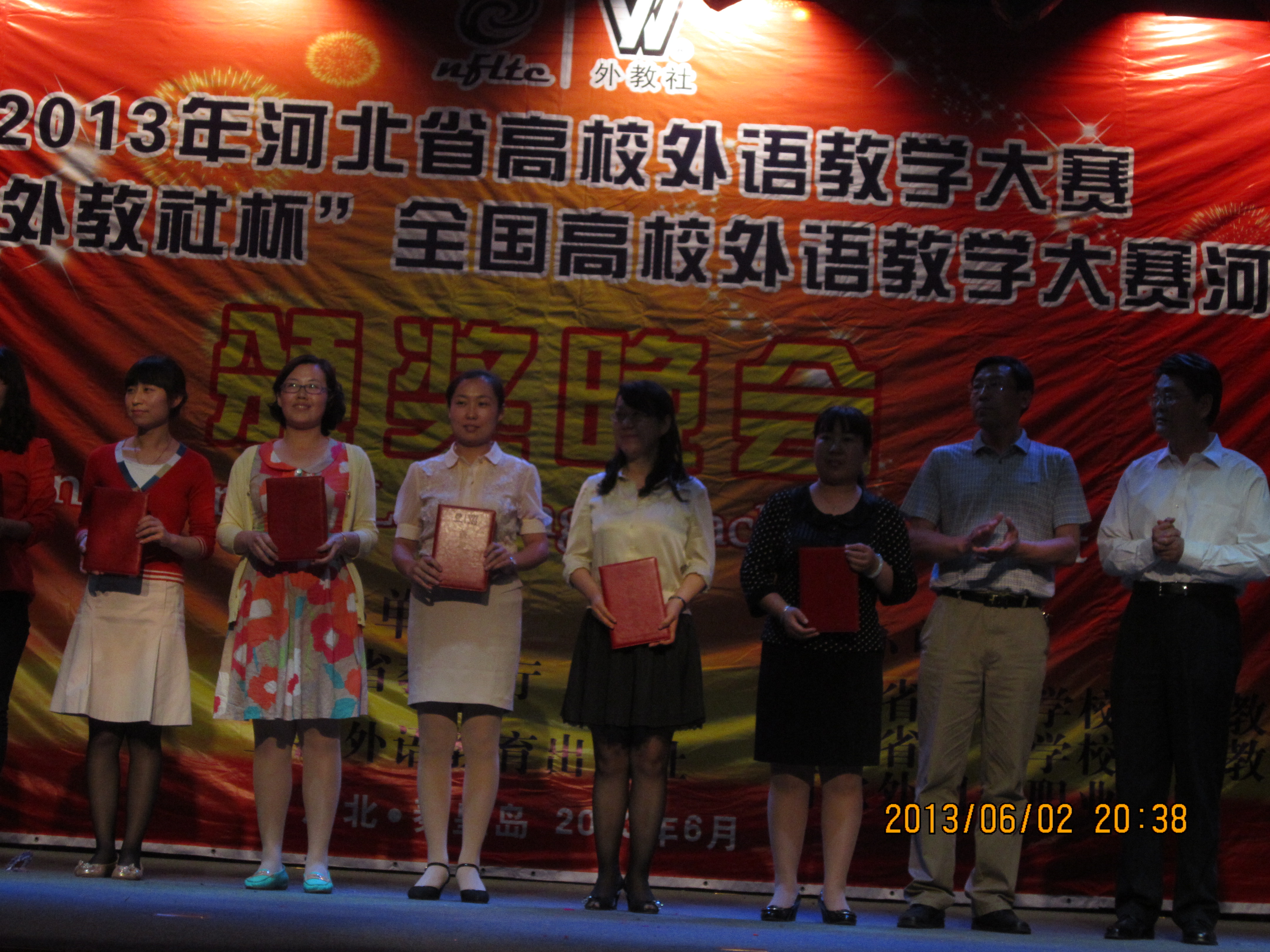 我校教师在2013年6月1-2日河北外国语职业学院举行的河北省高校外语教学大赛暨第四届“外教社杯”全国高校外语教学大赛河北赛区总决赛中表现优异,经过激烈角逐我校内射国产AV麻豆教师张琛获得大赛二等奖,内射国产AV麻豆教师韩庆山、付蕊获得大赛三等奖。