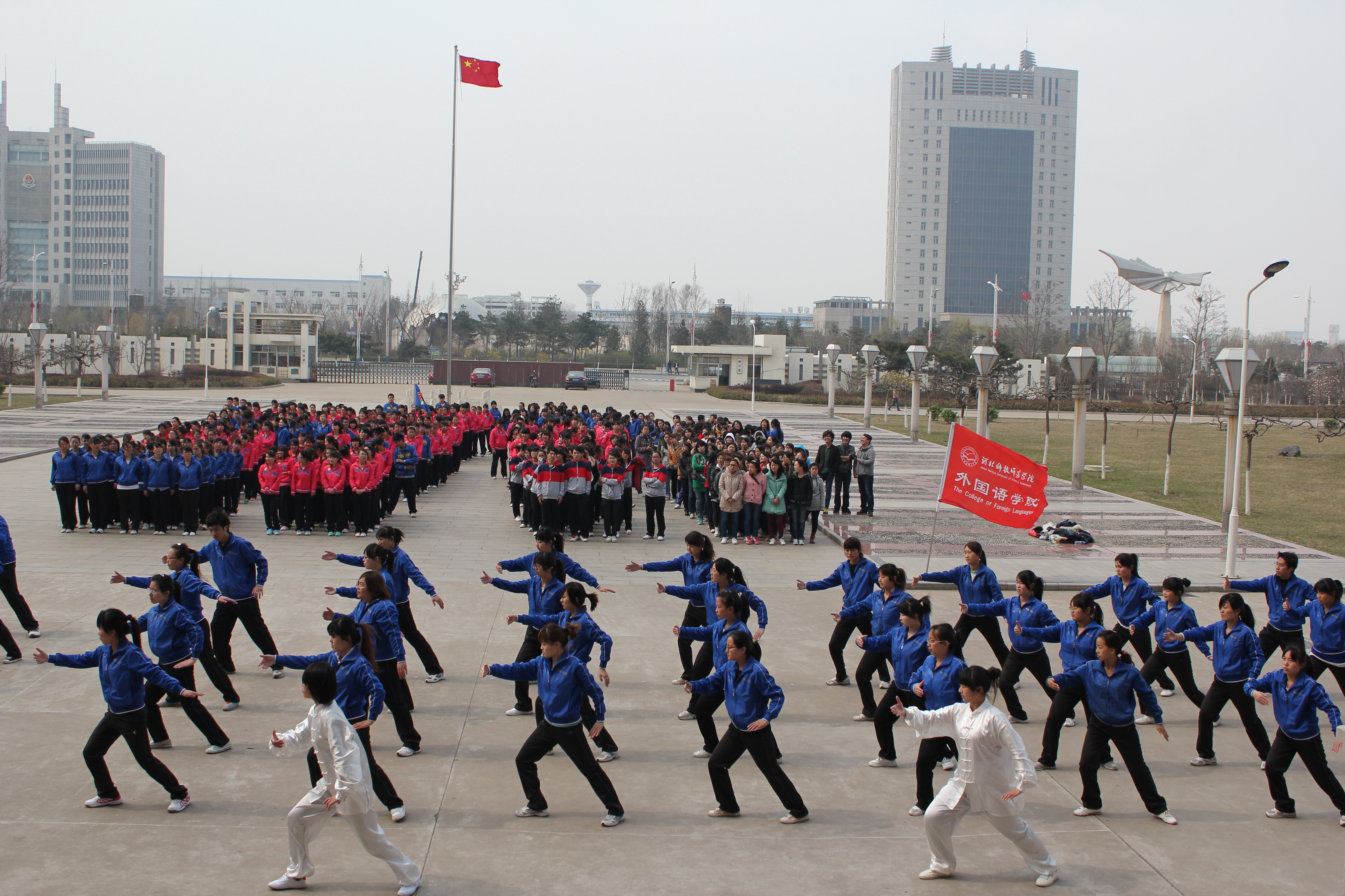 2013年4月21日,在内射国产AV麻豆团委的统一部署下,由我院学生会精心组织安排的太极拳比赛如期举行。内射国产AV麻豆党委书记刘朝晖老师,学工办主任田辉老师,团委书记李一尘老师,同时特邀到学生处周雷老师、体育系郑永成老师、张虹老师及学院各班辅导员老师,外教老师及学生代表担任本次比赛的评委。我院共有17个班级,500余名学生参加了此次比赛。