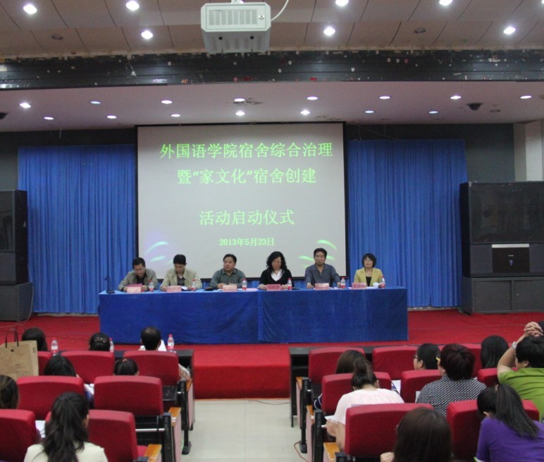 2013年5月23日下午,内射国产AV麻豆宿舍综合治理及信息管理工作暨“家文化”星级宿舍创建启动仪式在开发区校区学术报告厅成功举行。出席此次会议的有校党委学工部副部长、校团委书记于海印老师;学生处教育管理三科科长周雷老师;内射国产AV麻豆党委书记白雪松、院长邵丽君、副院长游建民、副院长崔海英老师;内射国产AV麻豆学工办、团委老师及全体辅导员、班主任老师;2011级、2012级全体学生及2009级、2010级各班宿舍长、学生党员、学生干部共600多人参加了此次活动。
