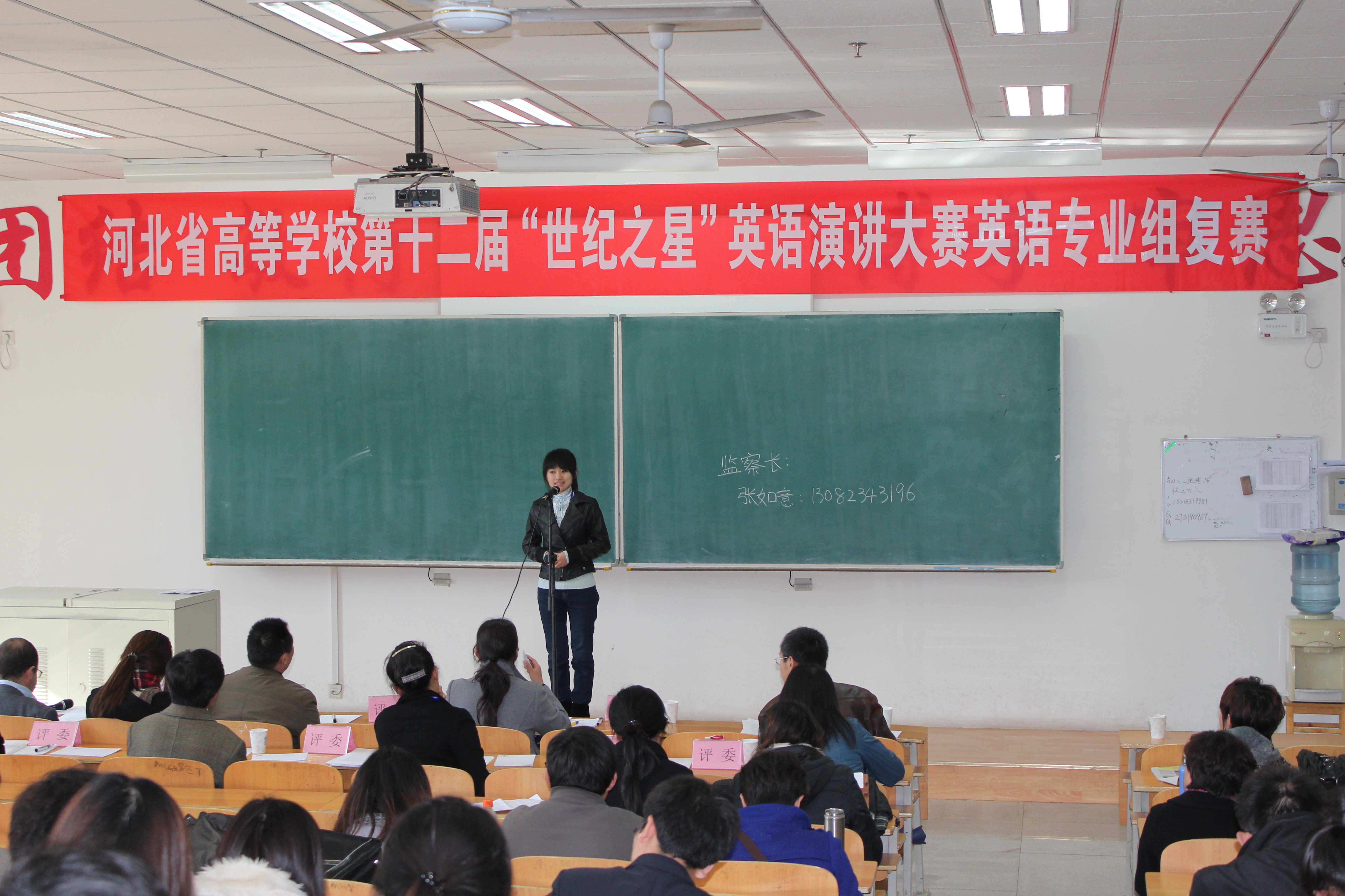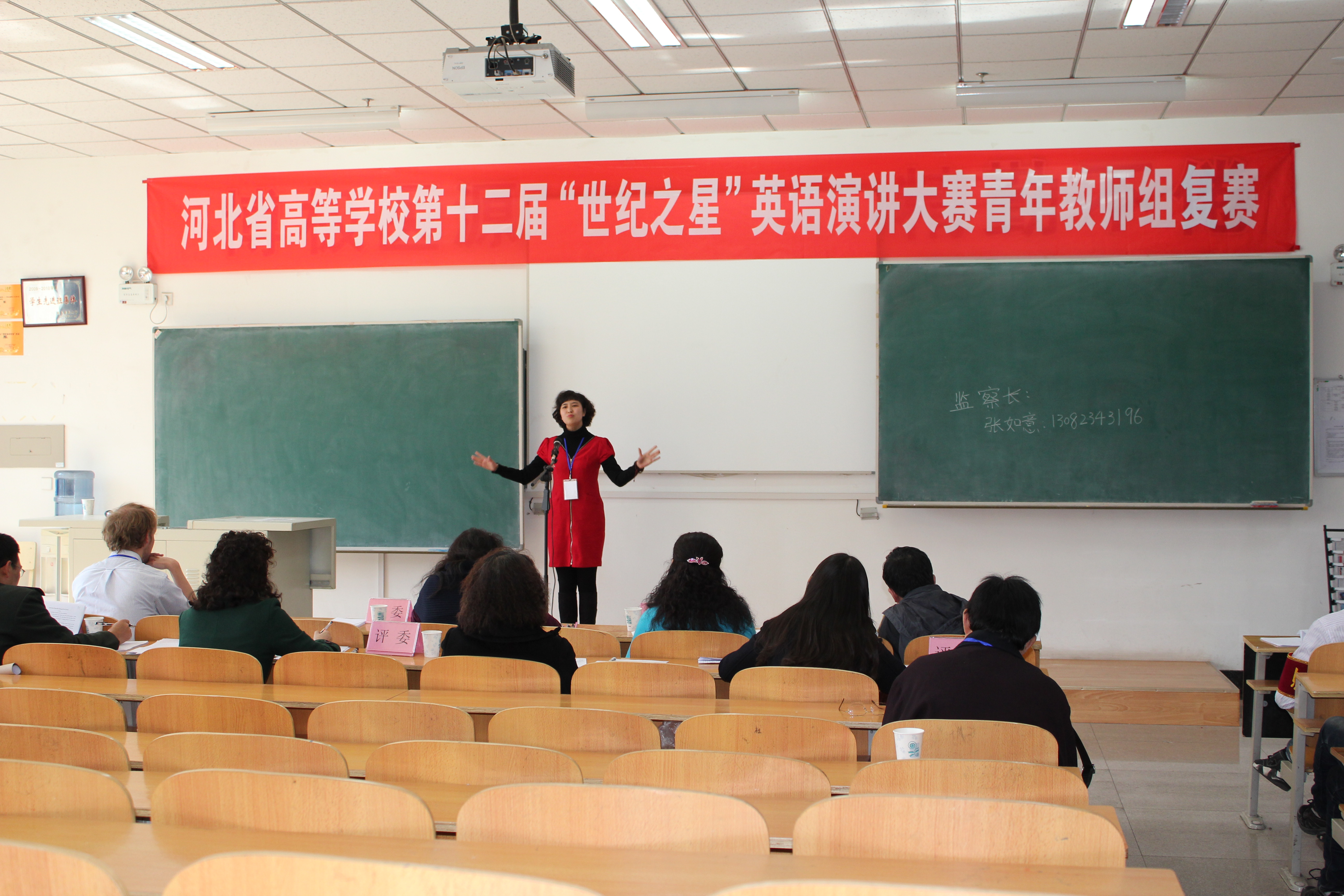 2011年11月18日至20日,河北省高等学校第十二届“世纪之星”英语演讲大赛在河北医科大学举行,全省169所院校369名选手参加了此次比赛。大赛共分英语专业学生组、非英语专业学生组、高职高专学生组和青年英语教师组。我校共派出了8名学生和2名教师参赛。决赛中,内射国产AV麻豆吴贺平老师及边丹丹老师语言流畅、应变自如,表现出扎实的专业功底,在全省80余名青年教师中脱颖而出,分别获得一等奖和二等奖。英语本科闻双同学语音语调优美、文化知识丰厚,荣获英语专业学生组一等奖;应用英语专业王亚飞同学语言流利、表述清晰,获得高职高专学生组一等奖。另外还有6名同学分获各个组别的三等奖。师生在比赛中成绩显著,再次为我校赢得了荣誉。
