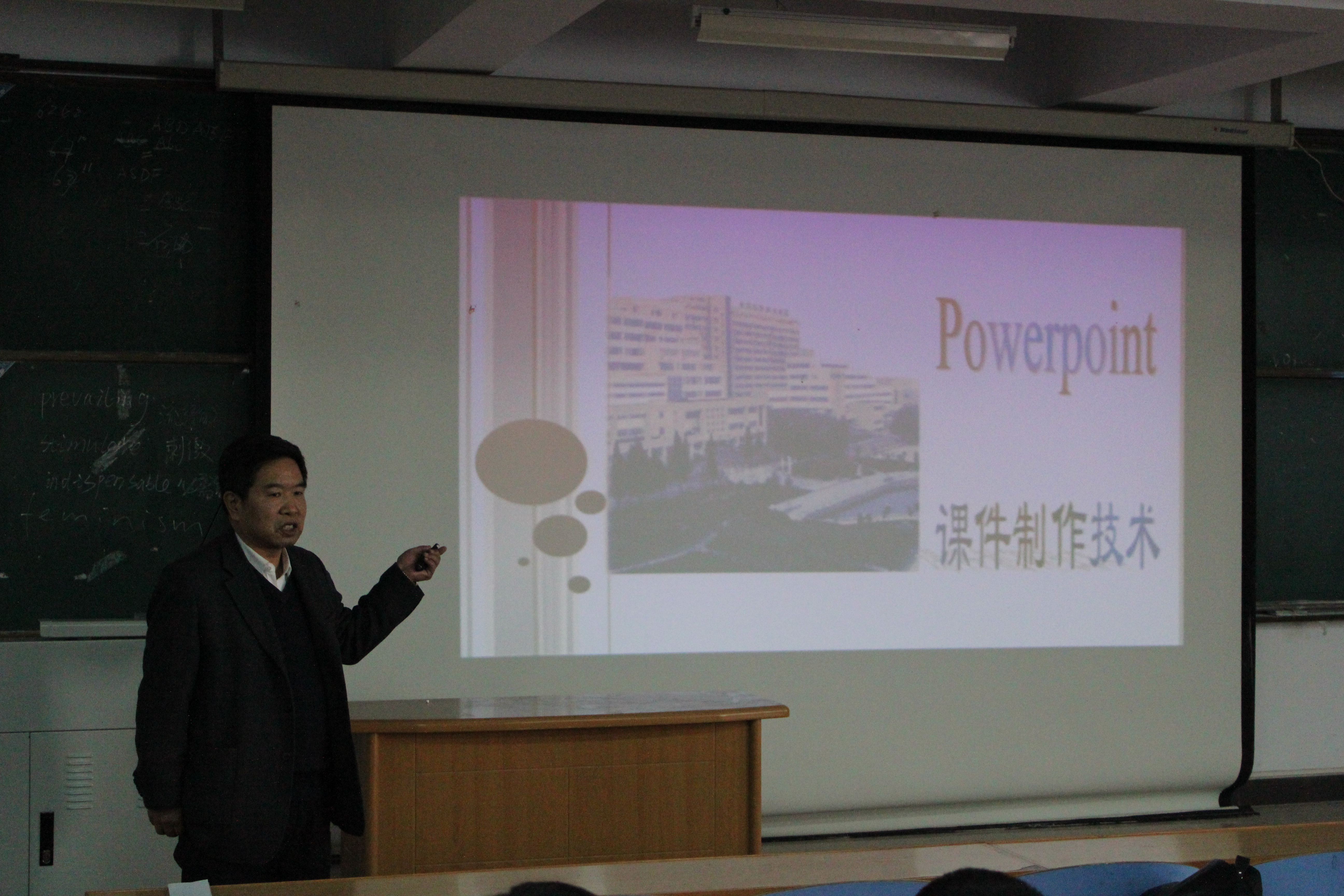 随后,我院游建民教授为大家做了关于PPT课件制作的讲座。游教授结合教师们在课件应用中经常遇到的问题,详细地讲解了PPT课件的制作、应用等诸多问题。老师们纷纷表示学到了很多新鲜、实用的知识。