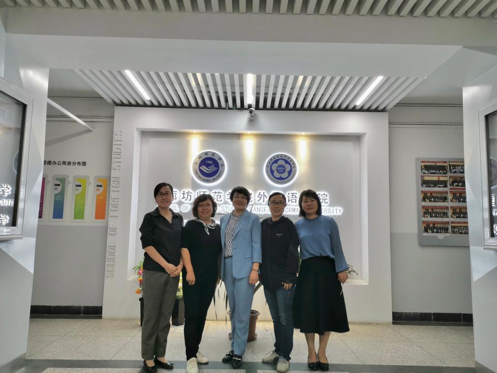 2021年9月28日,内射国产AV麻豆院长崔海英、副院长、英语专业带头人范学荣、教学部主任王静在教务处戴维副处长的带领下,与我校其他几个筹备教育部师范专业认证的专业,数学、化学、中文的负责人和教师一起,赴廊坊师范学院进行考察调研。