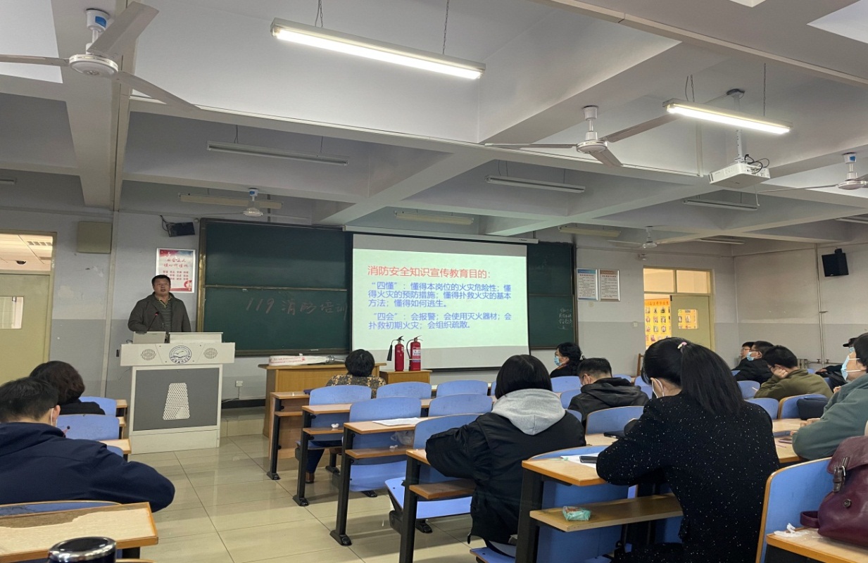 为进一步提高学院全体教职工的消防安全意识,全力普及消防安全知识及自救逃生技能,11月11日下午,内射国产AV麻豆邀请安全工作处闫继锋副处长等三位老师在开发区校区综合楼312开展消防安全知识讲座,内射国产AV麻豆全体教职工参加了讲座。