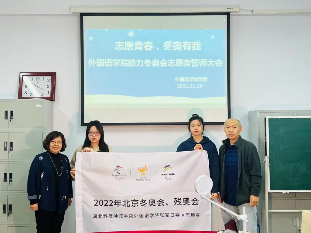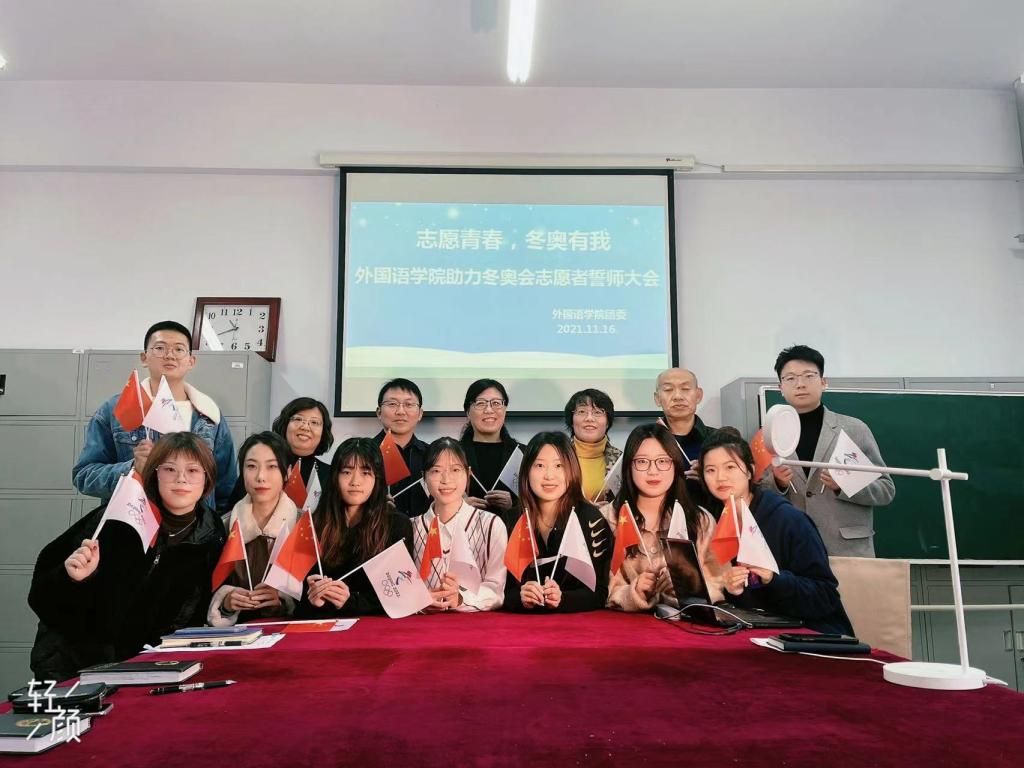 首先,院长崔海英在开幕致辞中充分肯定了大学生志愿者服务冬奥会的重大社会意义,强调冬奥会既是运动员的盛会,也是志愿者的盛会。希望学生们传播好中国文化,努力把自己打造成为有中国情怀、国际视野和跨文化沟通能力的“外院名片”。在志愿者宣誓仪式中,一句句铿锵有力的誓言,承载着志愿者们的壮志豪情。随后,副院长罗学峰、范学荣对志愿者们举行了授旗仪式。党委书记邵丽君在总结发言中表示,学院志愿者是通过学院、学校层层选拔出来的,要明确使命和担当,希望大家能进一步深刻了解志愿服务精神和奥运精神,注重进一步提升服务质量,充分体现大国风范。同时要保护好自己的人身安全,展现我院青年学生的风采,展示年轻一代的风貌。