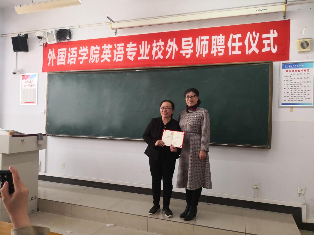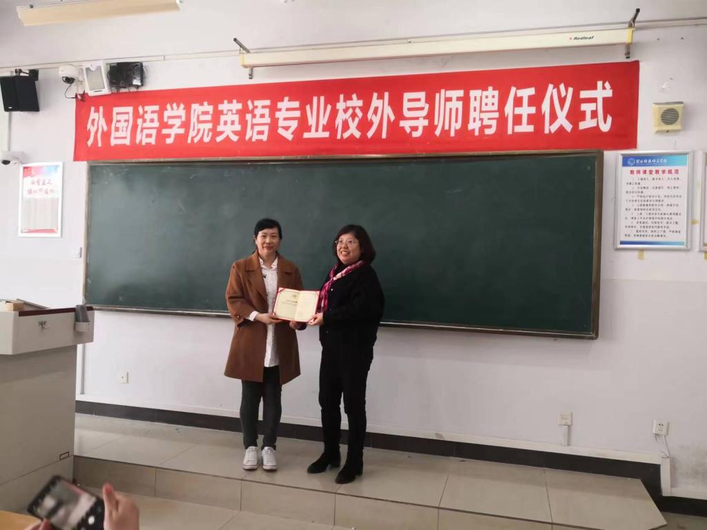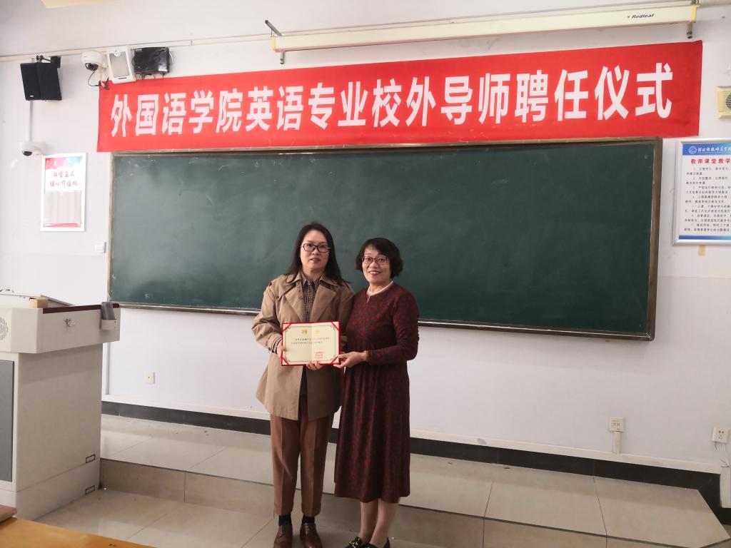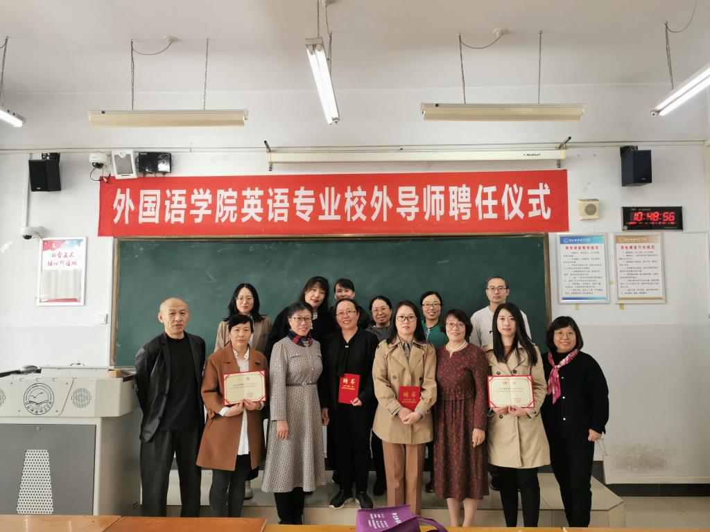 2023年4月1日上午,内射国产AV麻豆在开发区校区综合楼706举行了英语专业校外导师聘任仪式。仪式由内射国产AV麻豆院长崔海英主持,内射国产AV麻豆领导班子成员邵丽君书记、范学荣副院长、罗学锋副院长、四位中学一线校外导师和部分英语专业教师参加了此次活动。