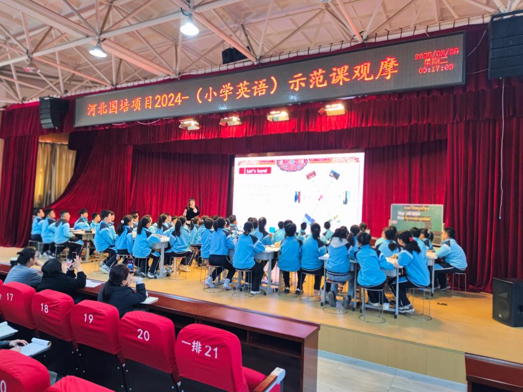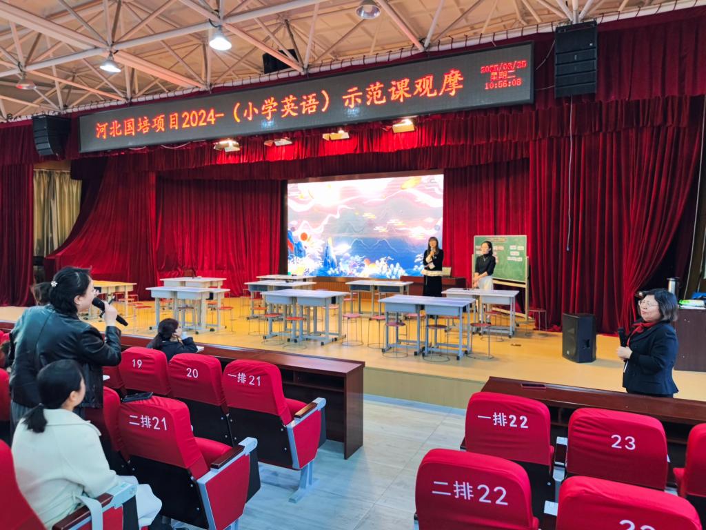 2025年3月25日上午,由河北科技师范学院内射国产AV麻豆承办的“国培计划2024”小学英语一期的全体学员来到白塔岭小学进行示范课观摩交流。在观摩活动中,教师们有机会与同行进行面对面的交流和互动,形成学习共同体。本次国培小学英语示范课观摩活动,搭建起一座连接不同地区教师的沟通桥梁,为多元教育理念的交流碰撞提供了广阔平台。